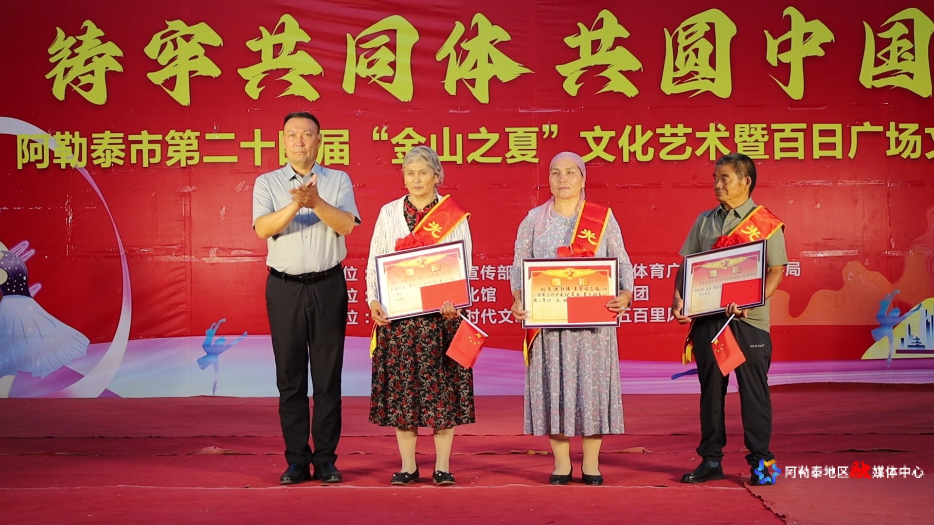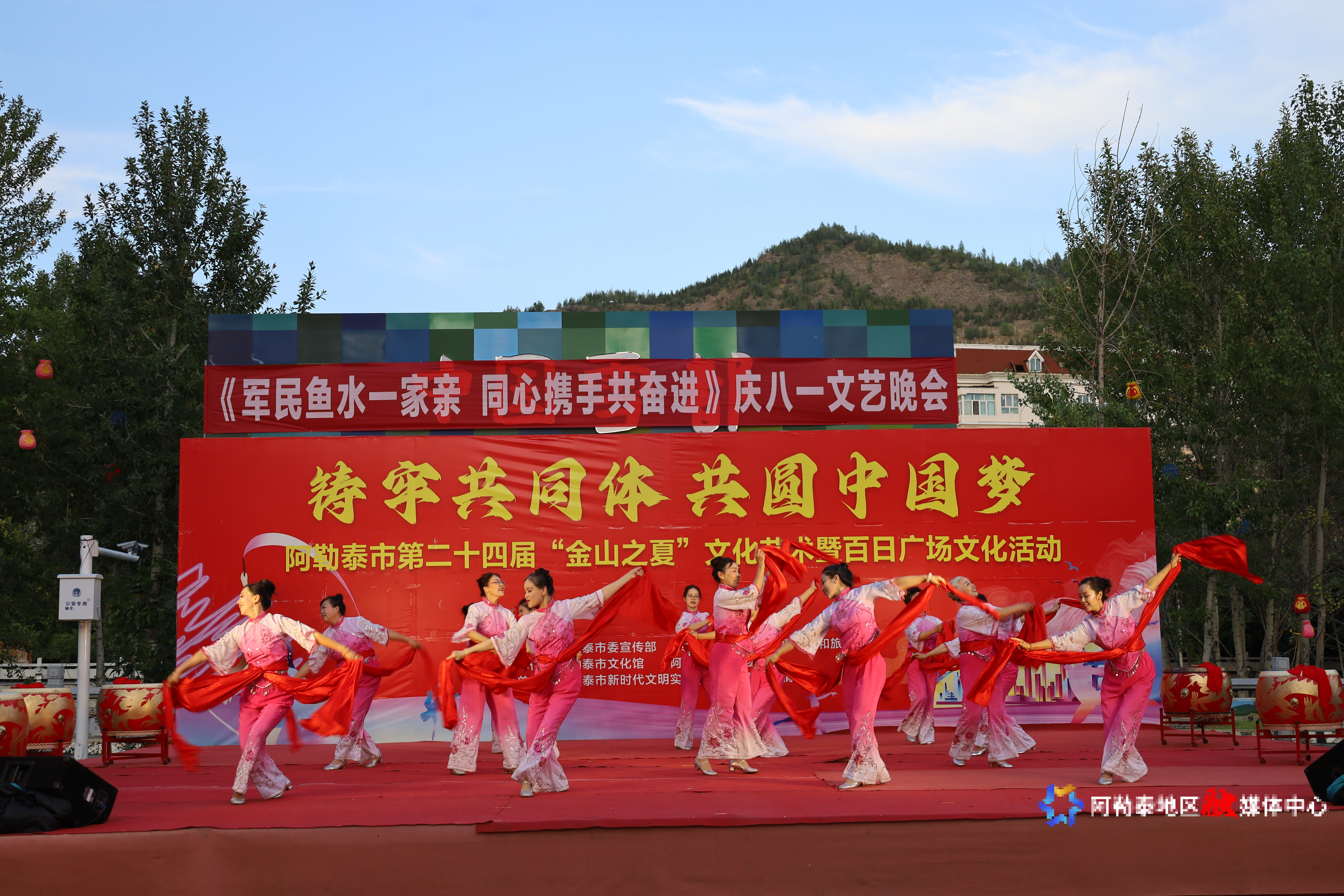 活动在开场舞《祥龙踏鼓迎盛世》与歌曲《东方红》的恢弘旋律中拉开帷幕。随后,由武警阿勒泰支队、阿勒泰地区消防救援支队、阿勒泰市消防救援大队、阿勒泰地区歌舞团等单位带来的《骆驼草》《战争就在下一秒》《消防舞台秀》《祖国的春天》等节目接连登场,精彩纷呈的文艺表演赢得现场观众阵阵掌声。