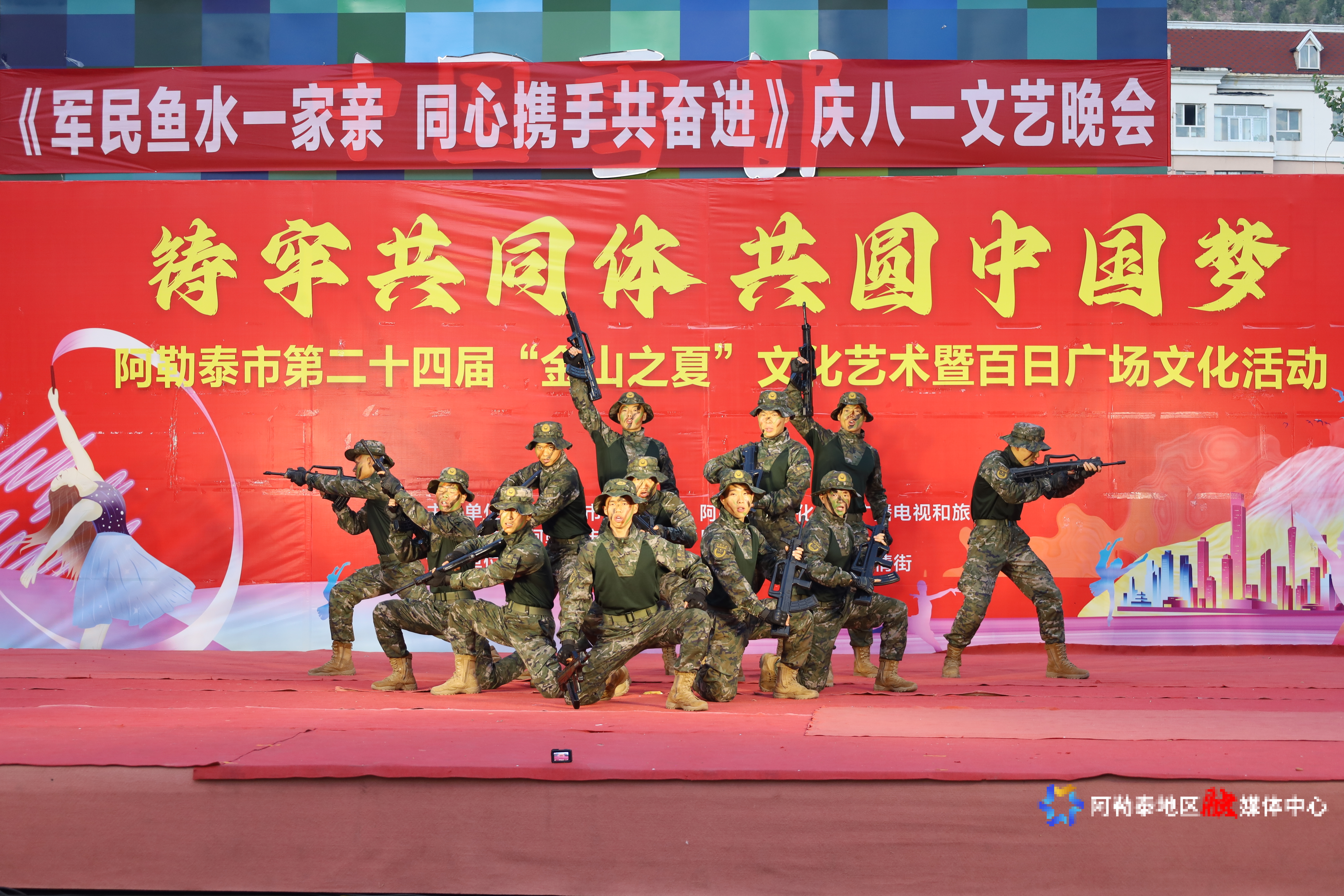 阿勒泰新闻网-阿勒泰地区融媒体中心(记者 阿丽娜·阿依登 通讯员 吾丽帕·吾拉勒别克)7月31日,阿勒泰市“军民鱼水一家亲 同心携手共奋进”庆八一文艺晚会在该市五百里风情街举行。