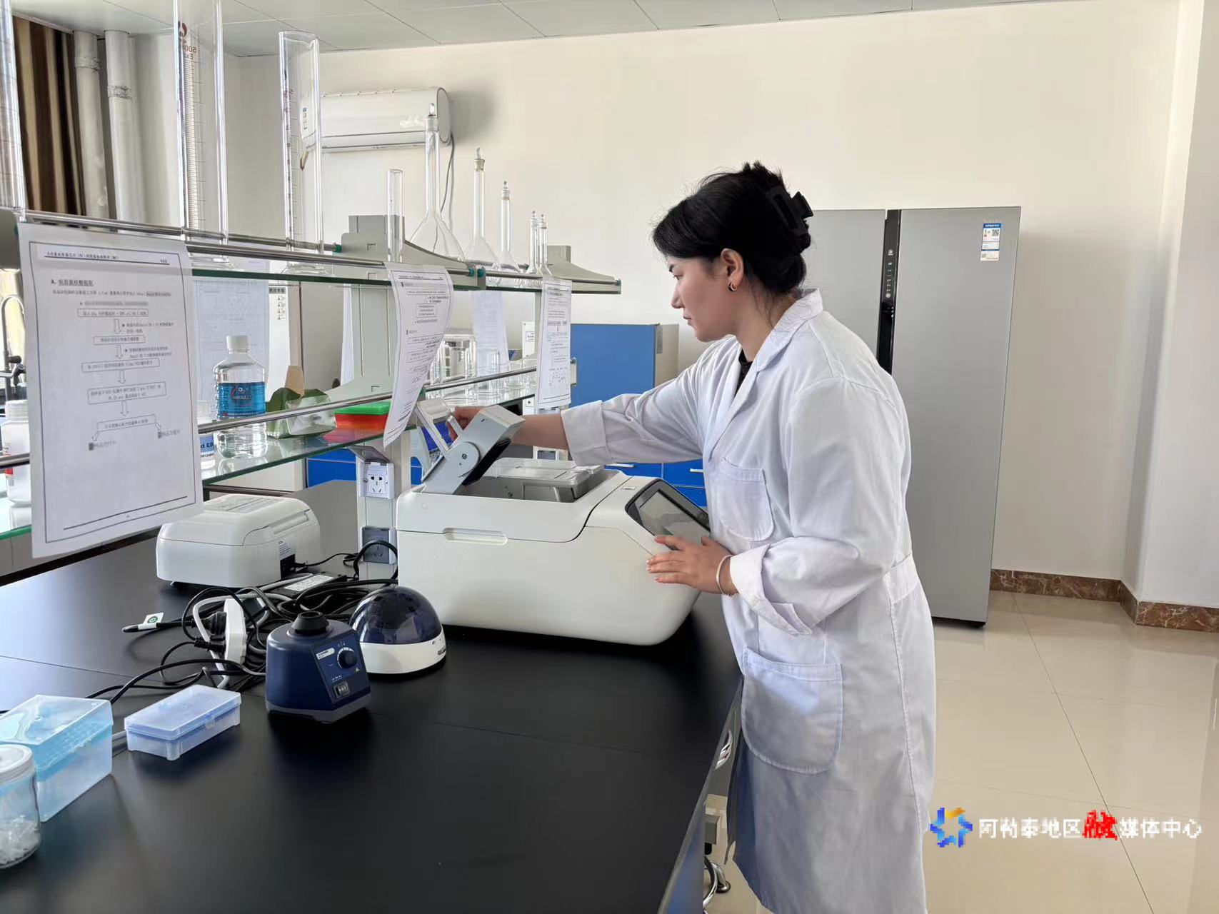 产业工人楚合拉在新疆坤元太和种业科技有限公司组培检测室进行做病毒检测。