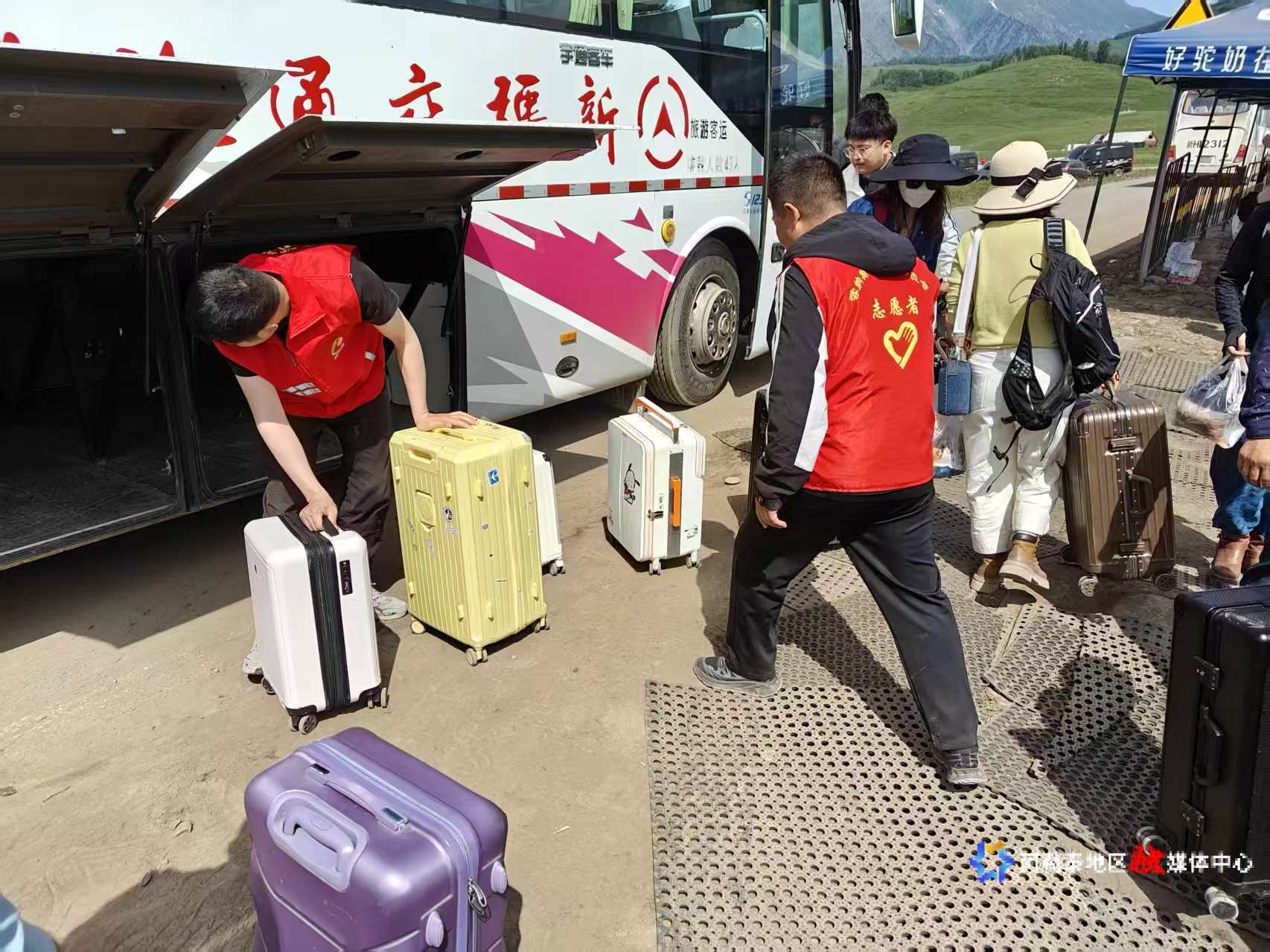 由机关干部、驻喀企事业单位人员组成的百余人志愿服务队,成为景区另一道风景。禾木景区入口处,服务队队长马军正带领队员疏导交通:“我们每天7点到岗,承担秩序维护、应急医疗、失物招领等工作,日均服务超300人次。”