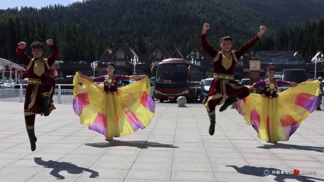 阿勒泰新闻网-阿勒泰地区融媒体中心(记者 古丽娜 通讯员 杜炼)8月12日,在喀纳斯景区贾登峪和禾木游客服务中心的演出现场,演员们伴着欢快的音乐节奏翩翩起舞,将非物质文化遗产以鲜活生动的形式呈现在游客眼前。