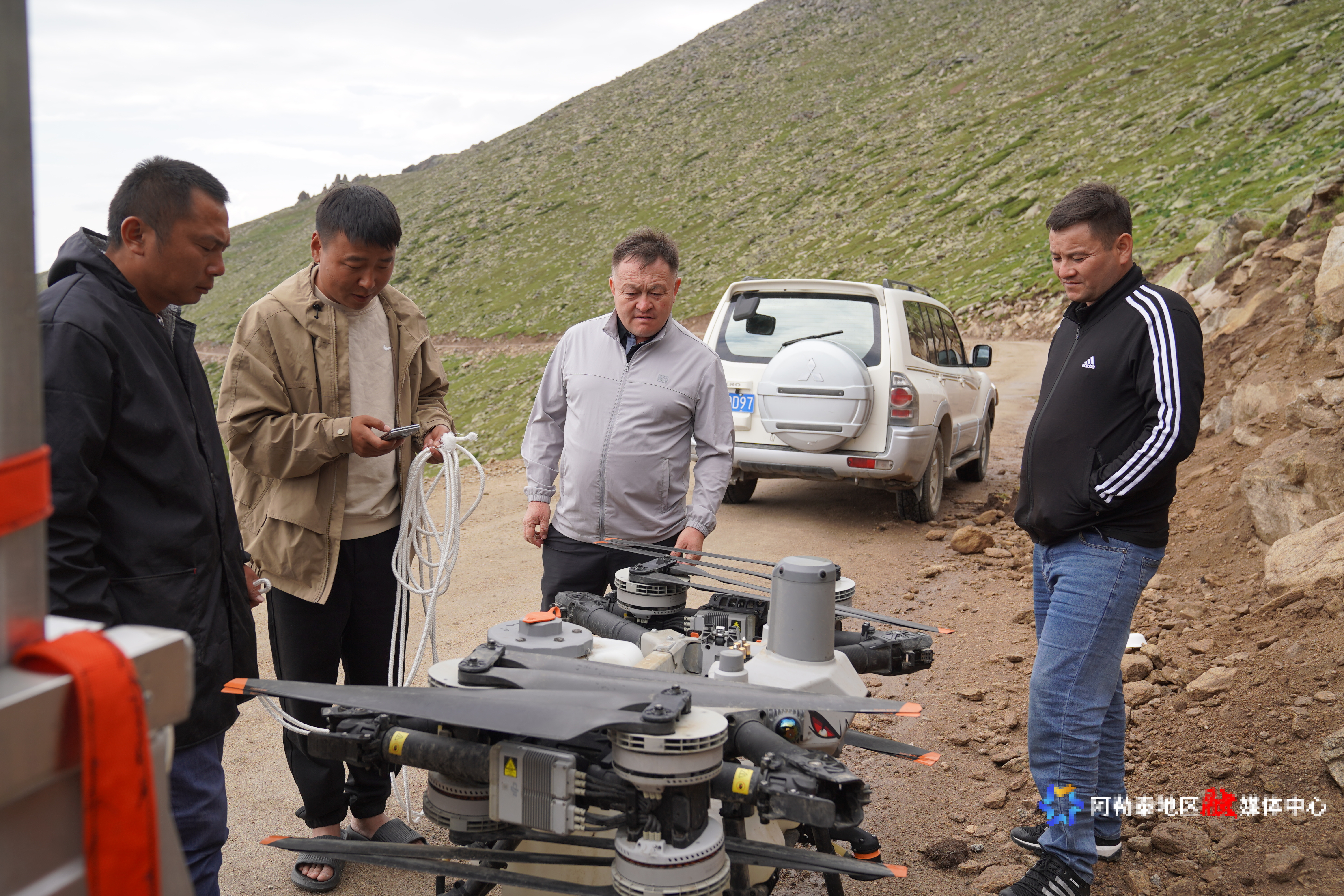 由于该信号塔安装位置地势较高,人工运输设备难度极大。为确保工程顺利推进,施工方专门聘请专业无人机调运团队,高效完成了设备传输、安装以及电力供应、信号开通等一系列工作。