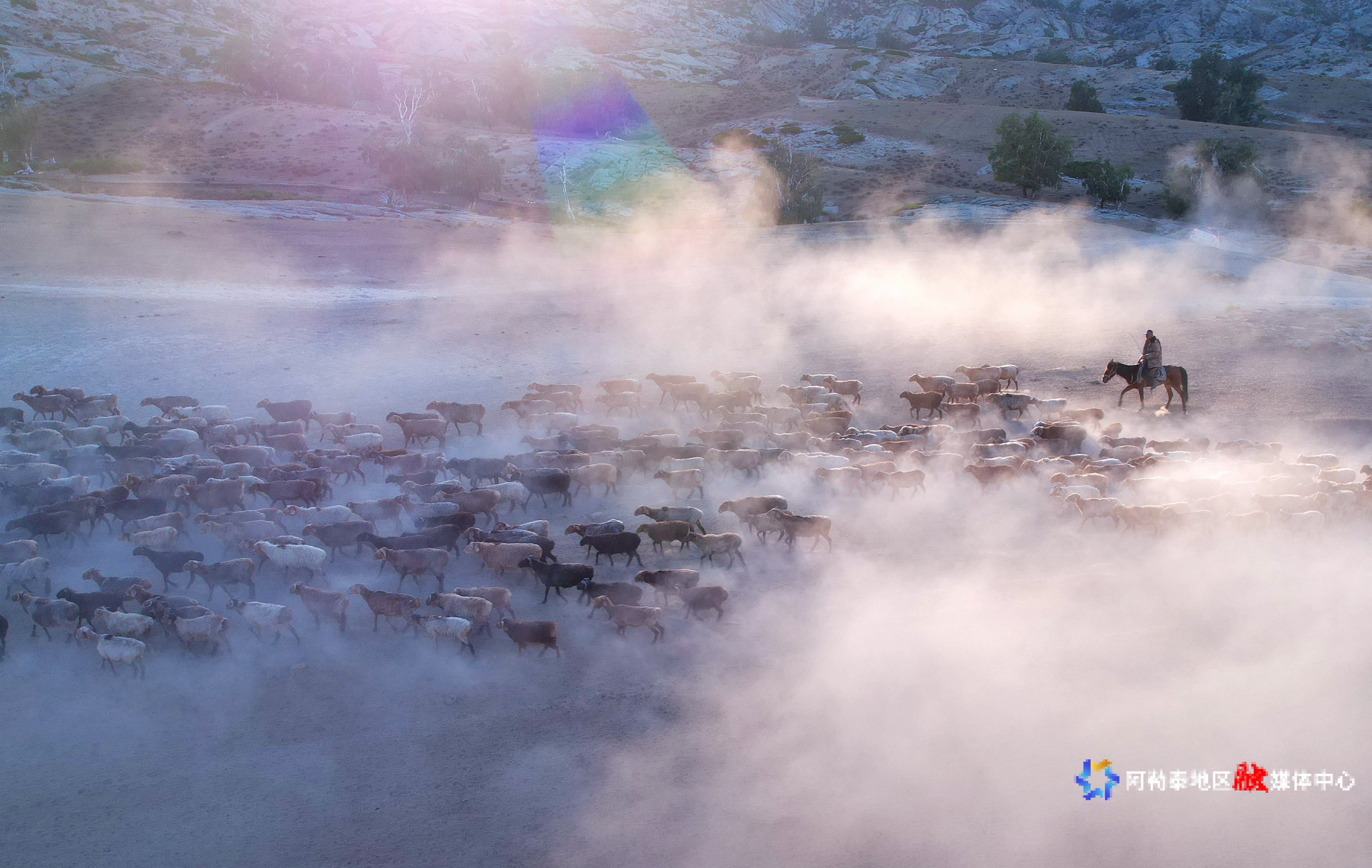 阿勒泰新闻网-阿勒泰地区融媒体中心(记者 阿尔达克·拜斯汗)当秋风掠过阿尔泰山的沟沟壑壑,阿勒泰便奏响了迁徙序曲——在山谷间、草场上、河道旁,浩浩荡荡的牛群、羊群,以及骑马的牧民构成一幅壮观画卷,这场延续千年的秋季转场正载着牛羊的蹄声与牧民的歌声,在北疆大地缓缓铺展。今年秋季转场自8月中旬开始,将持续到9月底。