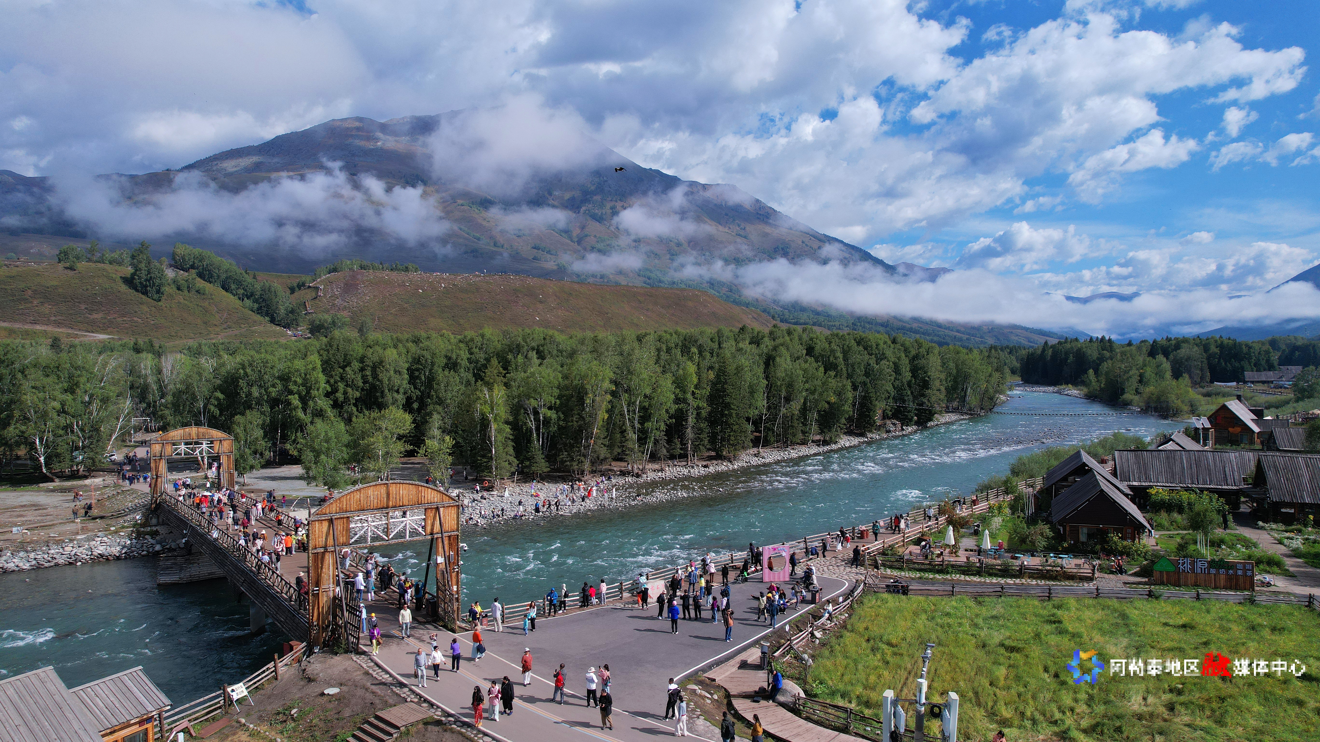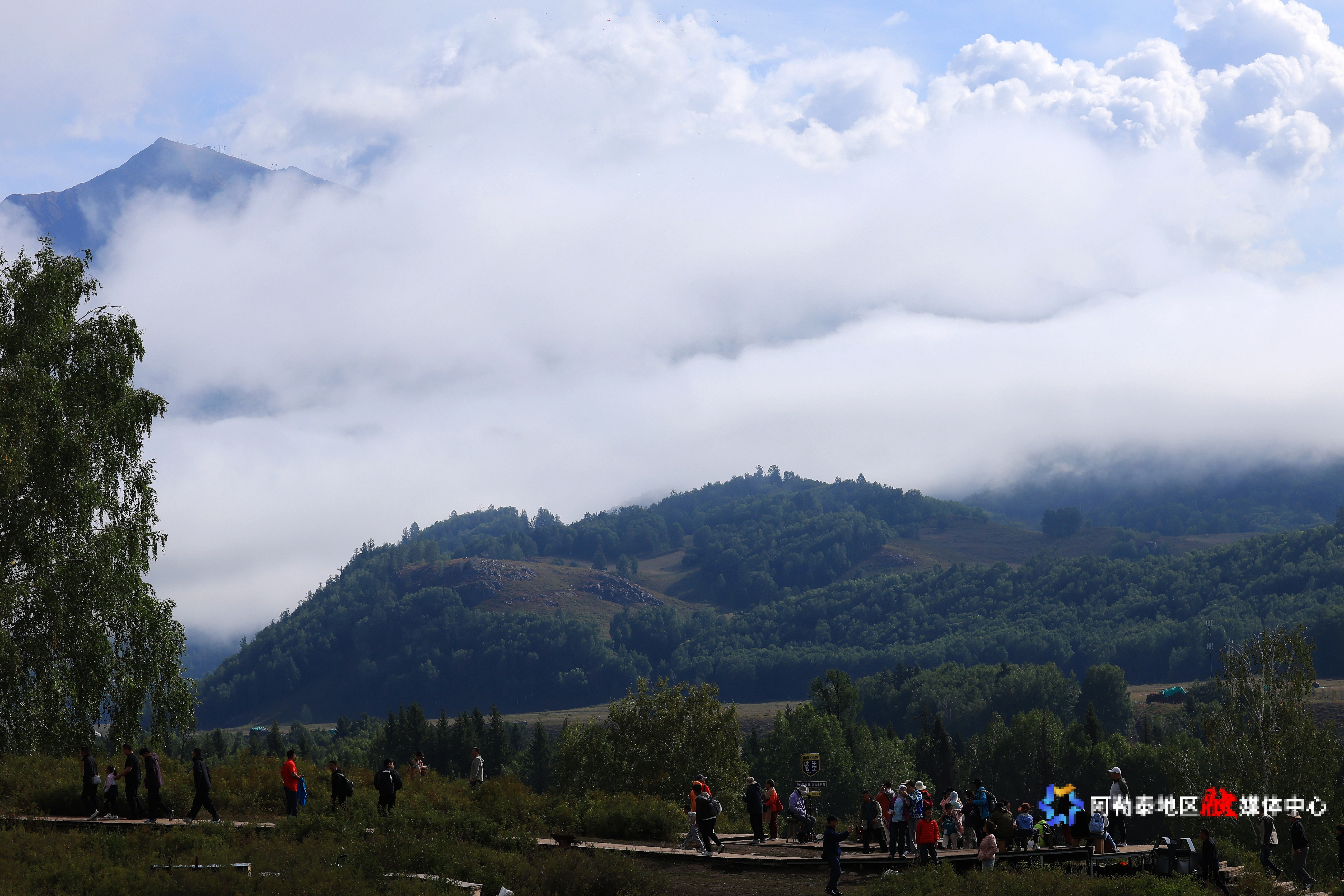 阿勒泰新闻网-阿勒泰地区融媒体中心(记者 阿尔达克·拜斯汗)8月25日,清晨的禾木村被薄雾轻柔笼罩,晨曦洒落,炊烟袅袅。游客们早早登上观景平台,捕捉第一缕阳光洒落村庄的瞬间。初秋时节,禾木景区苍翠的白桦林、原木垒砌的木屋、潺潺流淌的禾木河与远山交相辉映,构成一幅迷人的天然画卷,吸引全国各地游客前来游玩打卡。游客李梦娜赞叹道:“这里简直是童话世界,树木、木屋和晨雾组合在一起,美得令人窒息。”