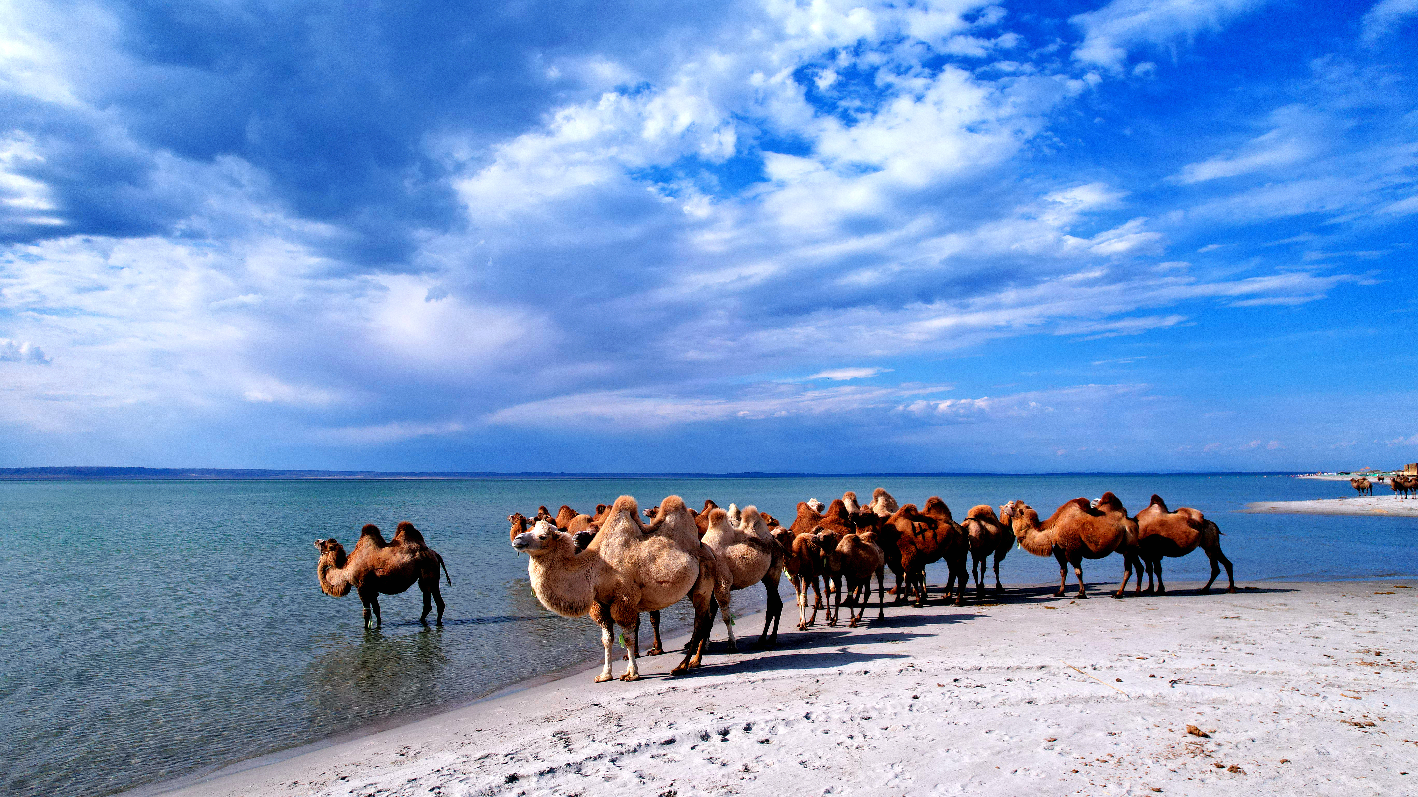 阿勒泰新闻网-阿勒泰地区融媒体中心(记者 阿尔达克·拜斯汗) 8月25日,在乌伦古湖畔,一群骆驼悠然饮水休憩。它们高大的身影与波光粼粼的湖面构成了一幅静谧而壮美的生态画卷。