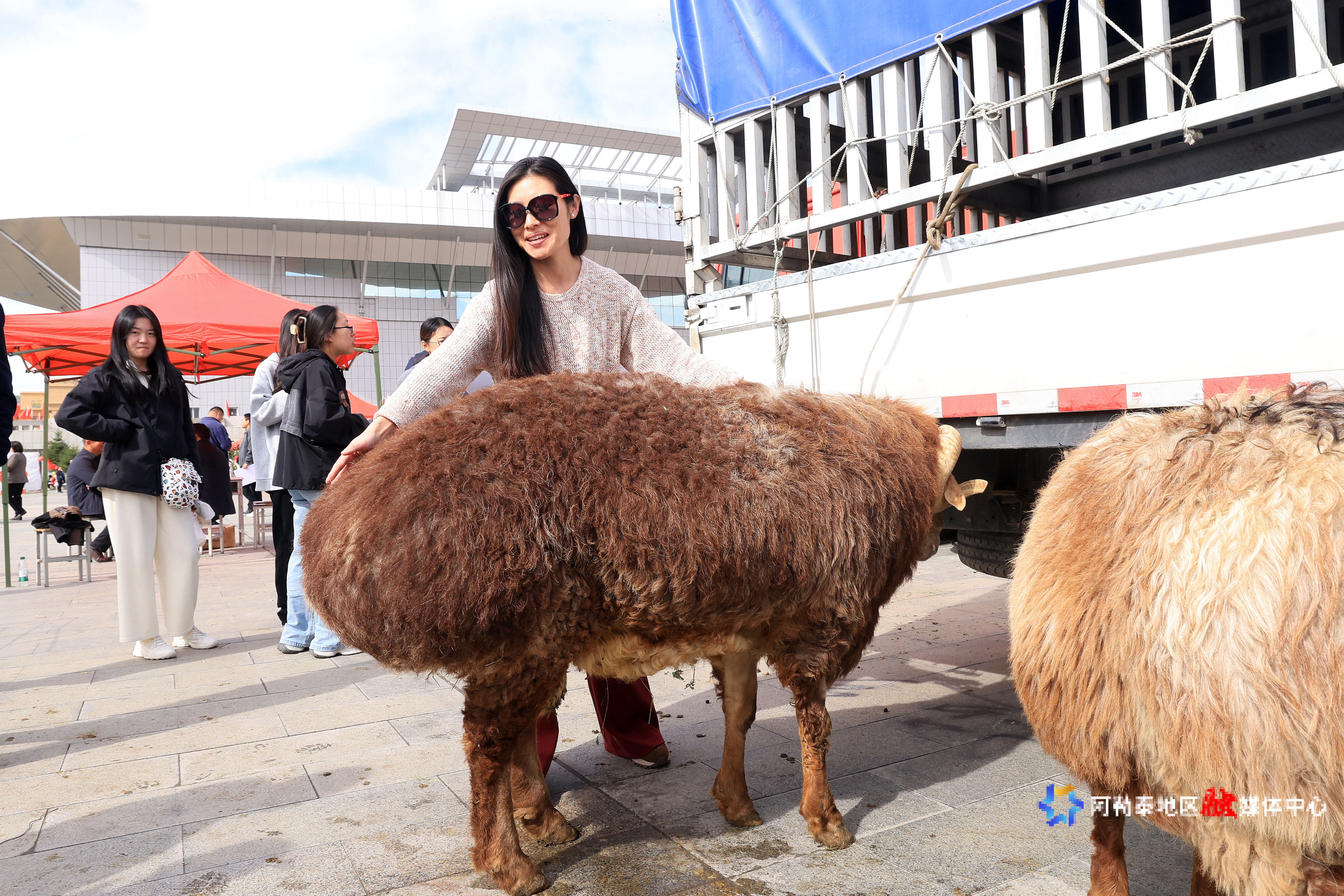 当天,地区体育馆广场热闹非凡。舞台上,各族群众身着特色服饰,歌舞表演轮番上演;展区内,香甜的瓜果、鲜嫩的牛羊肉与精致的手工艺品错落陈列,展示着全年的丰硕成果;美食区内,烤全羊、烤鱼的鲜香弥漫,诱人香气引得食客纷纷驻足。