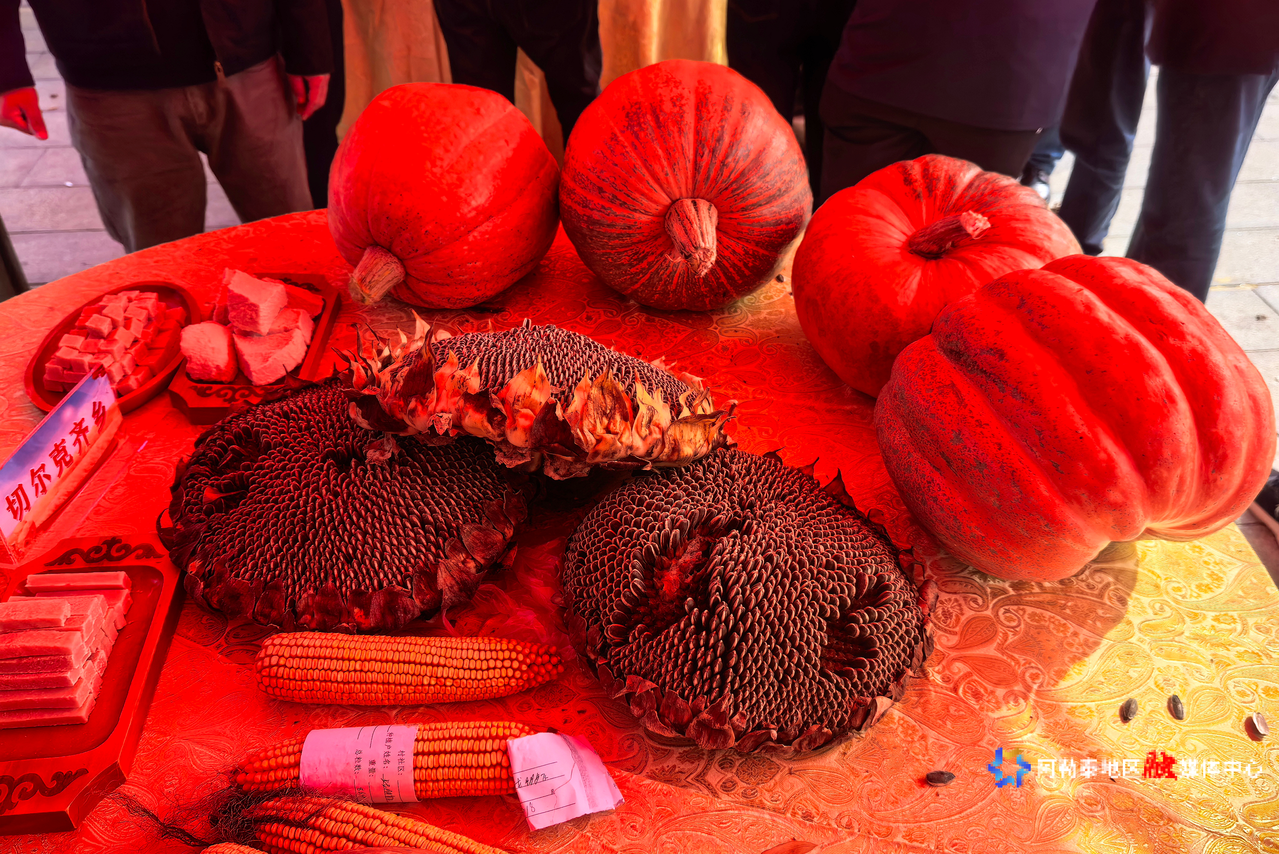 经过激烈角逐,各项一等奖获得者揭晓:食葵一等奖获得者为切尔克齐乡农牧民王东海种植的“双星60”品种,籽粒饱满、盘径达38厘米;南瓜一等奖获得者为拉斯特乡农牧民铁永兰培育的巨型南瓜,重达22公斤;玉米棒一等奖获得者为切尔克齐乡农牧民塔拉斯别克·阿合提种植的“新玉18”品种,棒长26厘米,籽粒排列密集;奶疙瘩一等奖获得者为红墩镇农牧民塔南·波克白传统手工制作的酸奶奶疙瘩,口感醇厚、造型规整;马奶一等奖获得者为萨尔胡松乡农牧民拜托拉·哈那哈提酿制的马奶,纯度佳、酸香适口;阿勒泰羊一等奖获得者为阿苇滩镇农牧民朵合德尔别克·艾林木别克选送的成年种公羊,体态健壮、毛色纯正。