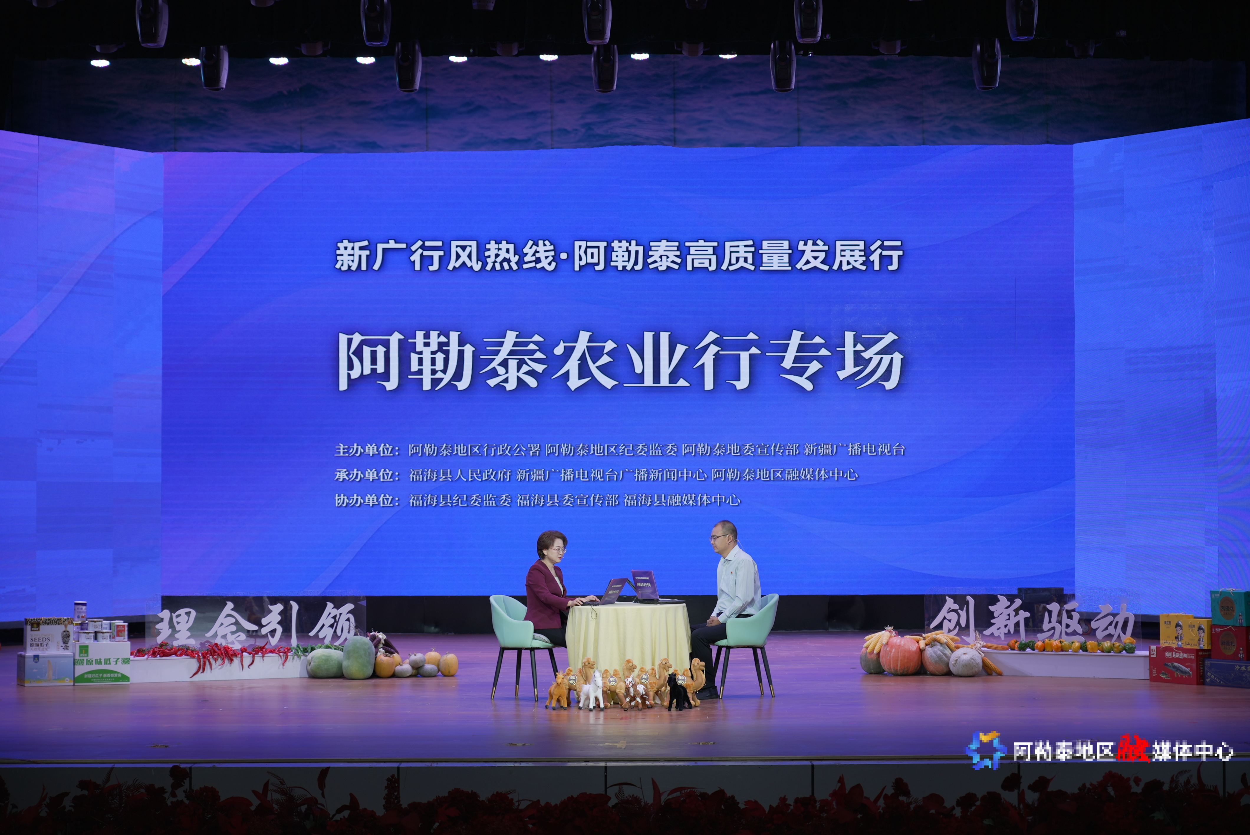 阿勒泰新闻网-阿勒泰地区融媒体中心(记者 吾兰别克·赛尔哈孜 通讯员 常化洋)10月11日,由阿勒泰地区行政公署、阿勒泰地区纪委监委、阿勒泰地委宣传部、新疆广播电视台主办,福海县人民政府、新疆广播电视台广播新闻中心和阿勒泰地区融媒体中心承办的系列直播活动——“新广行风热线·阿勒泰高质量发展行”之“阿勒泰农业行”在福海县举行,此次直播活动聚焦阿勒泰地区农业高质量发展,深入探讨了如何发展农业特色产业、实现科技增效、促进农民增收等核心问题。