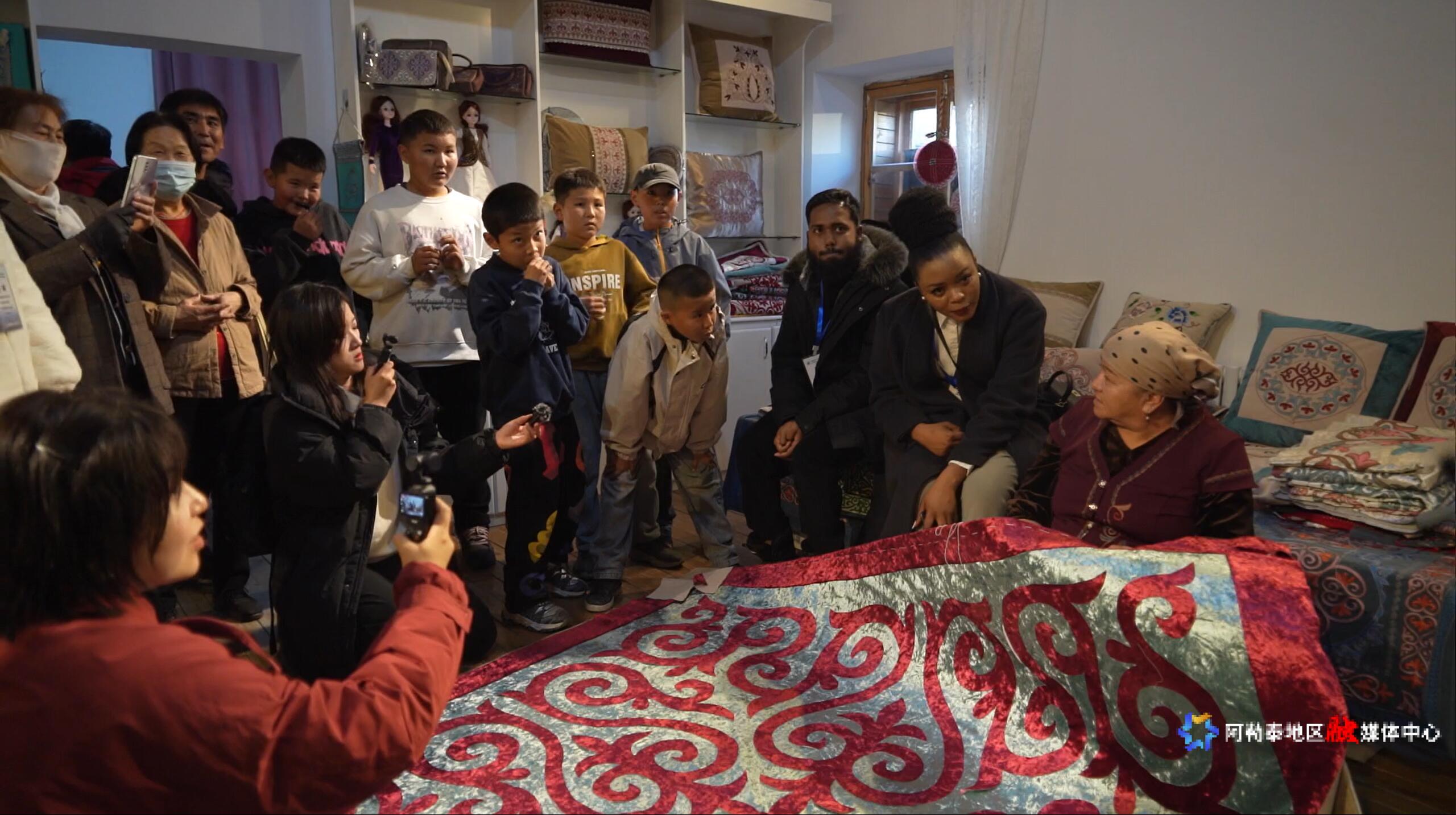 非物质文化遗产的活态传承为此次研学之旅增添了别样的温度。在富蕴县木拉商贸有限公司(阿克依额克刺绣合作社),绣娘现场展示刺绣技艺。这些精美的手工艺品,通过合作社的市场化运作,让绣娘实现技能增收,并吸引越来越多年轻人加入传承队伍。