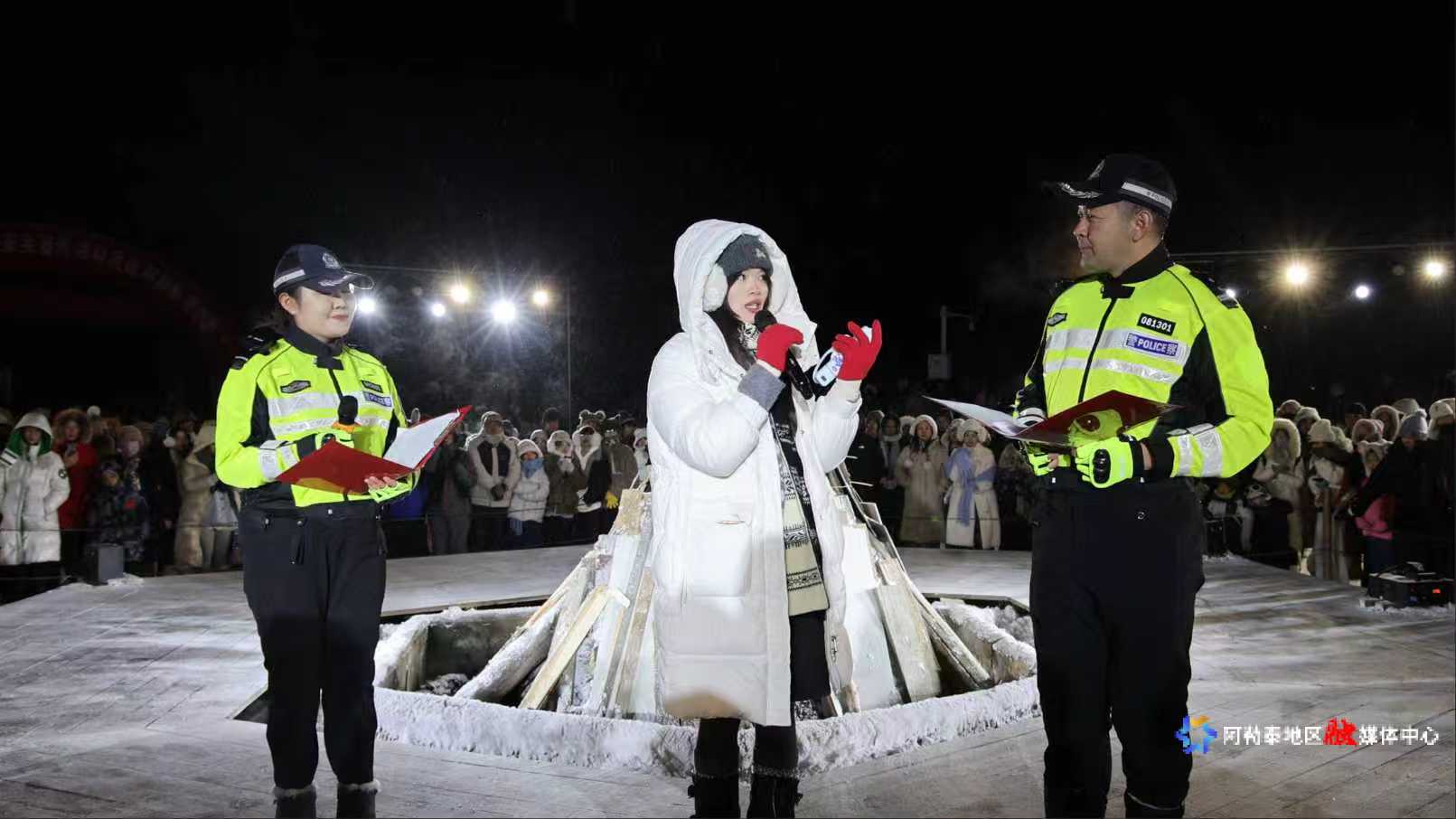 在喀纳斯景区禾木村,地区公安局喀纳斯景区分局联合禾木篝火晚会演绎部,举办“文明交通 礼行天下”美丽乡村行主题文艺晚会,以“民俗文艺汇演+线下安全宣讲+线上同步直播”三位一体模式,将安全知识与景区特色深度融合,为现场群众和游客呈现了一场集观赏性、知识性和教育性于一体的安全文化盛会,多维度筑牢冬季景区交通安全防线,推动交通安全普法宣传精准触达各类群体。