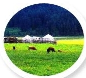 旭日东升,阳光渐渐爬上牧场。太阳毫不吝啬地将囊中金线、金粉、金丝,洒向一望无垠的草地,得寸进尺的光逐渐吞噬着黑暗。光影之间的分隔,若有若无。双方势力,由不平衡到平衡,由失衡到均衡,再到失衡。牛羊马驼,心无旁骛地吃草,渴了,信步到溪流边喝水。光影的艺术,处处可觅其踪迹。牲畜、草、山、云,都是明与暗、光与影的道具。哈斯铁尔随手抓上小帽子,朝脸上一盖,睡个囫囵觉。迷迷糊糊醒来,日上三竿,回毡房喝碗奶茶。慈祥的奶奶,生怕累着孙子,一碗奶茶一块馕,奶茶一碗接一碗、馕一块接一块……奶奶眼中的孙子,长得那么英俊、那么好看,永远也长不大似的!