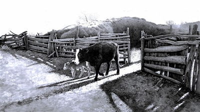 院里的牲畜们,在一起时间长了,就知道是一家人了,他们井水不犯河水,互相能够忍让,不会因为谁的体格大,谁就要霸占水槽或是饲料。老牛资格最老,慢慢有了威望,但它从不和其他牲畜争抢,喝水、吃草它习惯排在最后。正因为它脾气好,从不欺负羊,就被优待在羊圈里休息。一群羊里就它一头牛,它似乎也明白这是份信任!有个冬天早上,父亲看到老牛角上有鲜血,心里一惊,叫我们都过来看。我们猜,要么它顶撞了其他牲畜,要么自己撞到了墙上,不然,怎么会有血迹。仔细查看后,发现老牛没受伤,其他牲畜也没事。最后,在羊圈的墙上发现了一个新掏的洞,洞口也有些血迹,父亲断定有狼来过。因为我家住在村子最边上,屋后就是一片红柳沙包,有时会有狼出没。应该是,晚上狼掏洞进了羊圈,没想到里面还有头老牛,更没想到老牛这么勇猛,不但没吃上羊,自己还被顶伤。