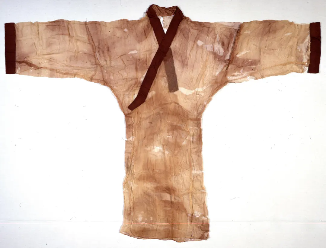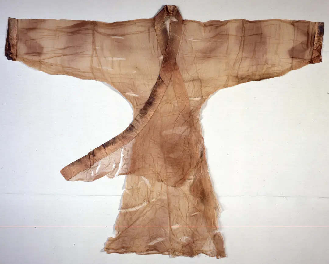 它与湖南博物馆收藏的另一件49克重的直裾素纱单衣,同为长沙马王堆1号墓出土。