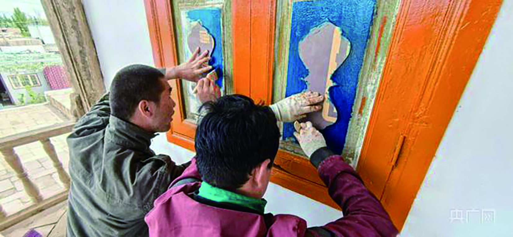 描摹、印花、细凿……50多岁的工匠吾斯曼·艾力熟练地对老屋檐、窗户进行雕花工作,一幅幅雕花在他手中生动呈现。