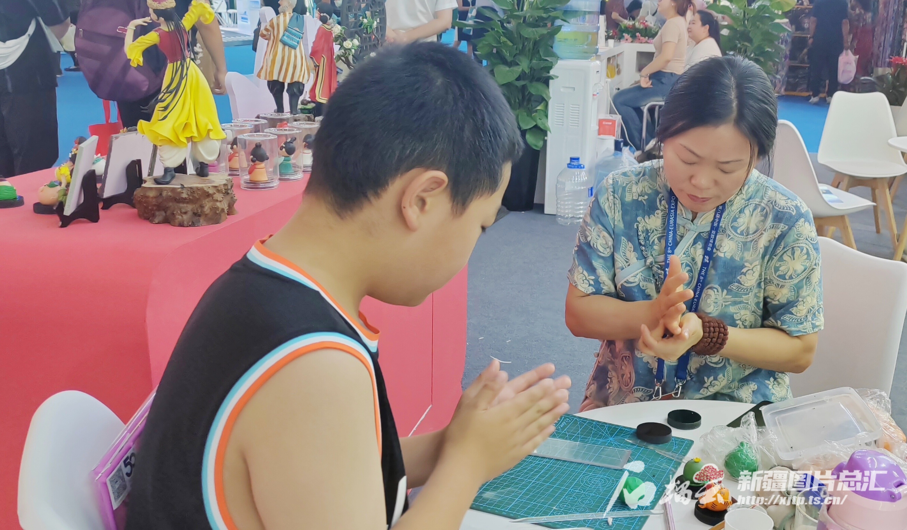 第八届中国—亚欧博览会上,非遗传承人王帆为青少年传授面塑制作技巧。石榴云/新疆日报 记者贾春霞摄