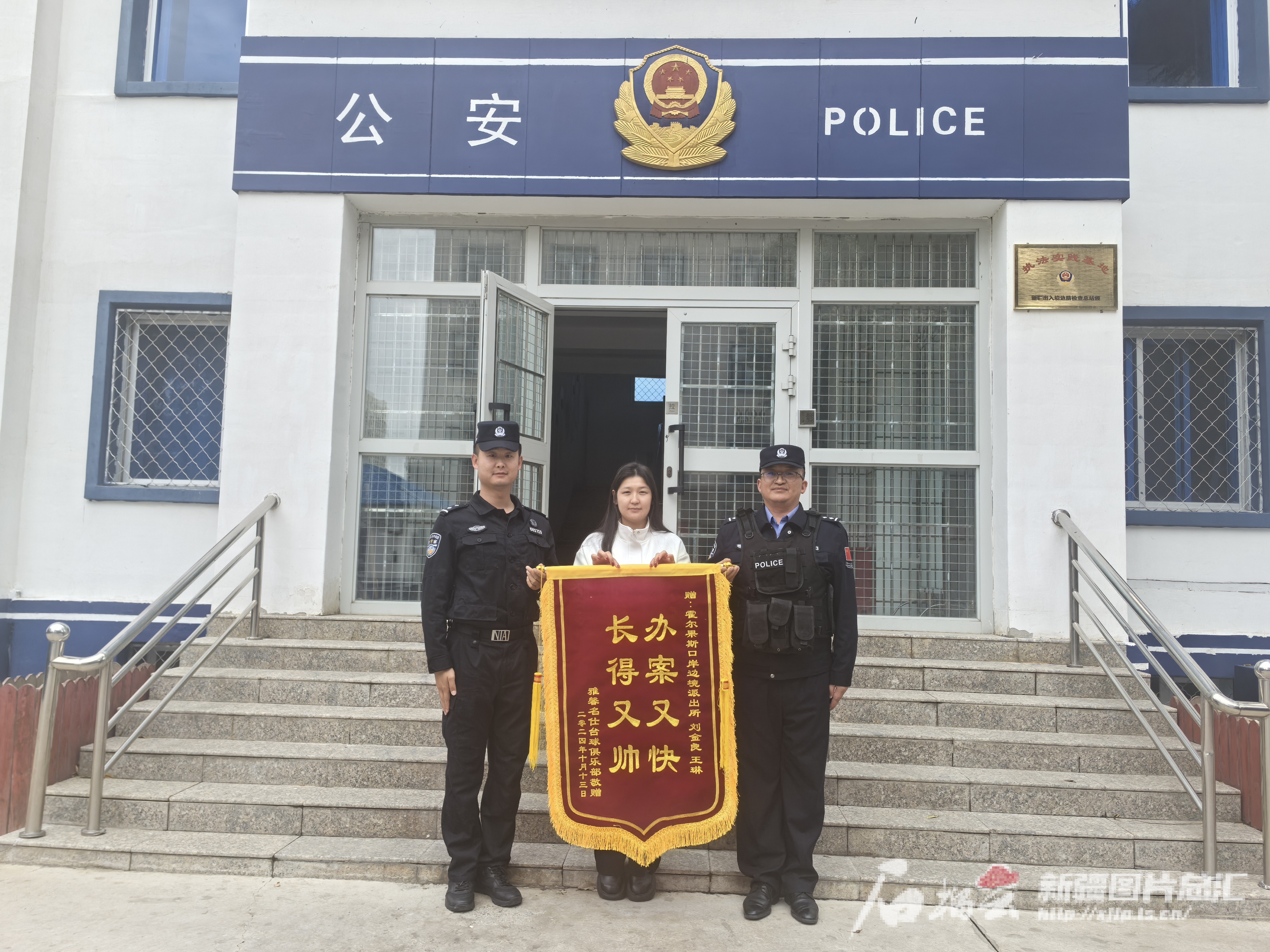 这天下午,一位女士发现店铺财物被盗,几经寻找无果,报警求助。新疆出入境边防检查总站伊犁边境管理支队霍尔果斯口岸边境派出所民警刘金良、王琳迅速赶往现场。当天,民警就将3名嫌疑人抓获,把被盗财物完璧归赵。这位女士没想到民警这么快就找到了失窃财物,很是钦佩。她特意找人制作了一面锦旗表达谢意。