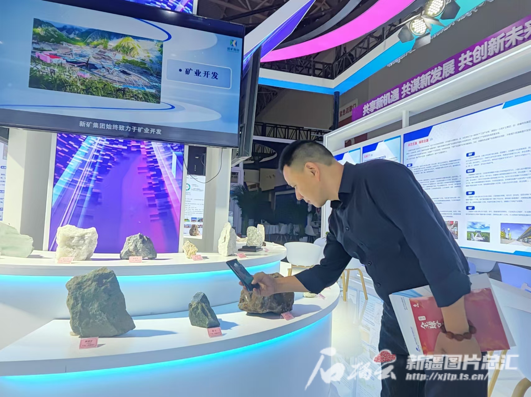 10月17日,在第二十六届中国国际矿业大会新疆特装展位上,一位观众用手机拍摄自己感兴趣的矿石标本。 天山网-新疆日报记者 王亚芸 摄