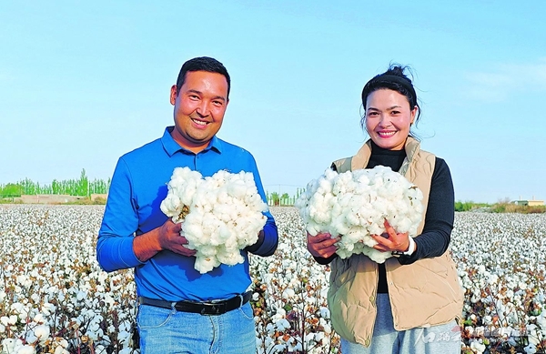 洁白如雪的快乐在传递,从田间隆隆的采棉机,到满载新棉的装载车;从轻柔如云的棉朵,到纺纱机吐出的根根纱线,再到一件件高品质的衣物……丰收的喜悦一点点变成驱寒送暖的衣物,温暖了四季,也温暖了每一个人。