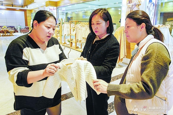 10月16日,顾客在位于乌鲁木齐市的中国彩棉(集团)股份有限公司彩棉产品展示大厅了解彩棉纺织产品。该公司生产的彩棉产量占国内市场的95%。天山网-新疆日报记者蔡增乐摄