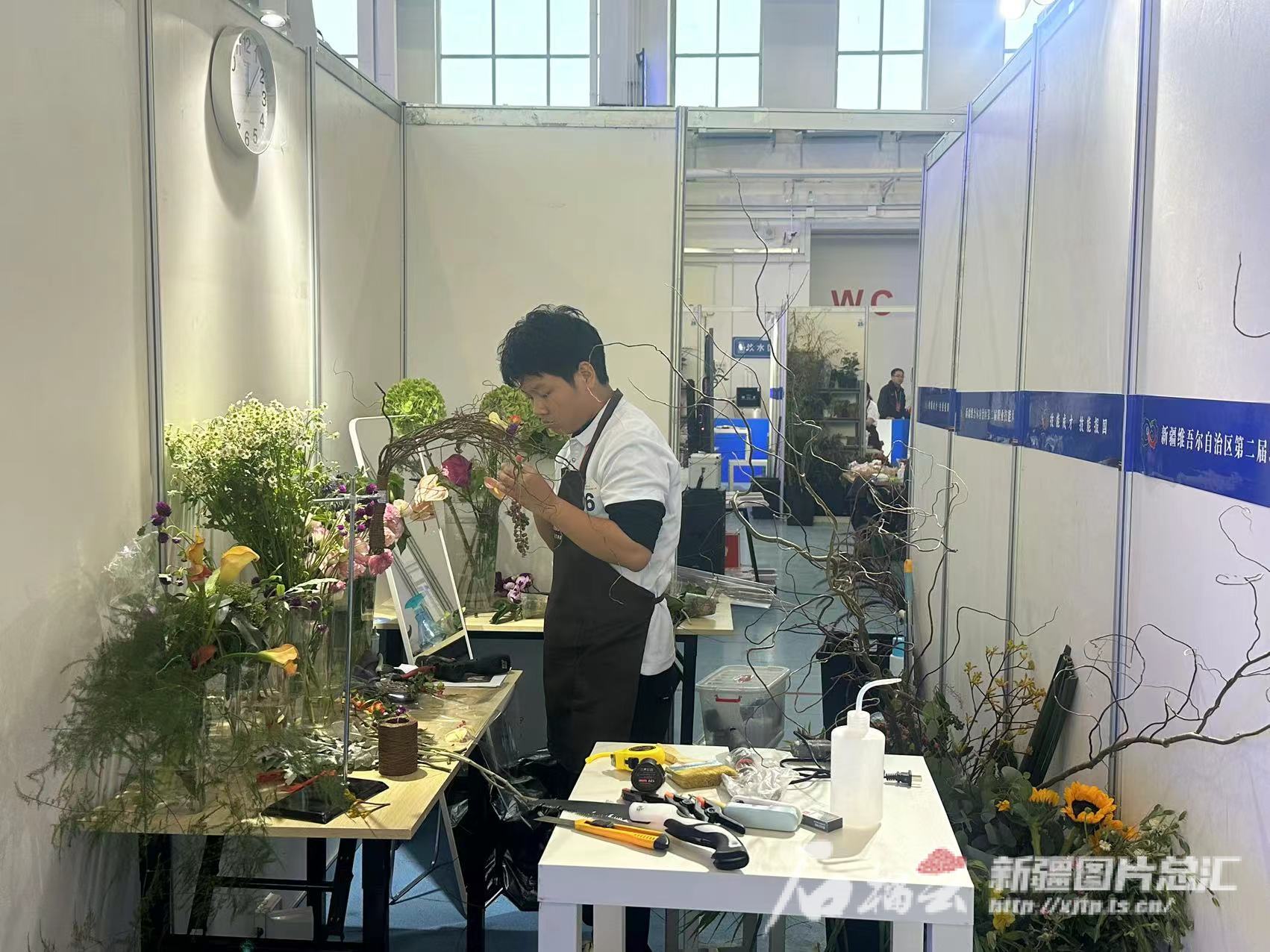10月12日,自治区第二届职业技能大赛在喀什市拉开帷幕。图为花艺项目比赛现场。天山网-新疆日报记者 赵春华摄