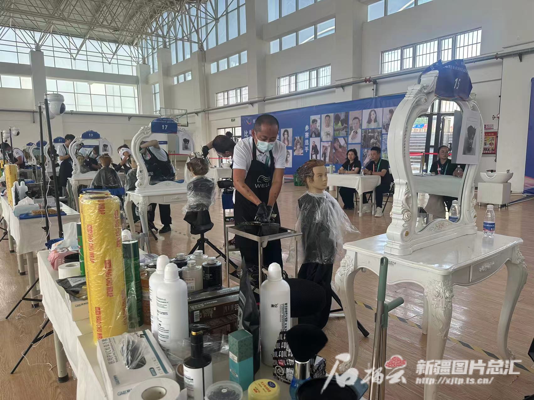 10月12日,自治区第二届职业技能大赛在喀什市拉开帷幕。图为美发项目赛场。天山网-新疆日报记者 赵春华摄