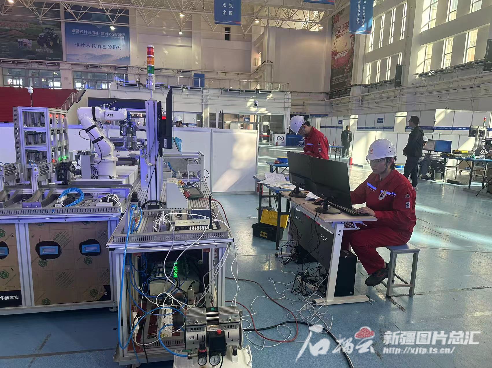 10月12日,自治区第二届职业技能大赛在喀什市拉开帷幕。图为机器人系统集成赛项比赛现场。天山网-新疆日报记者 赵春华摄