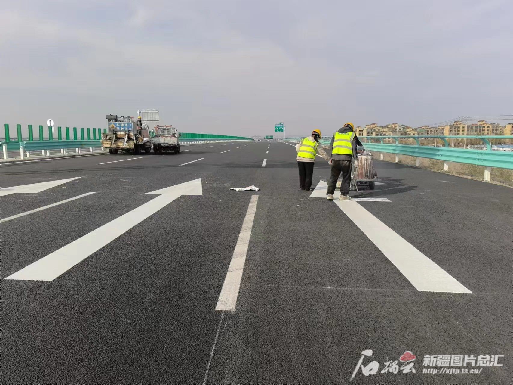 10月21日,乌鲁木齐绕城高速(西线)工程的施工作业现场,工作人员正在施划道路交通标志标线。天山网-新疆日报记者 杨斌摄