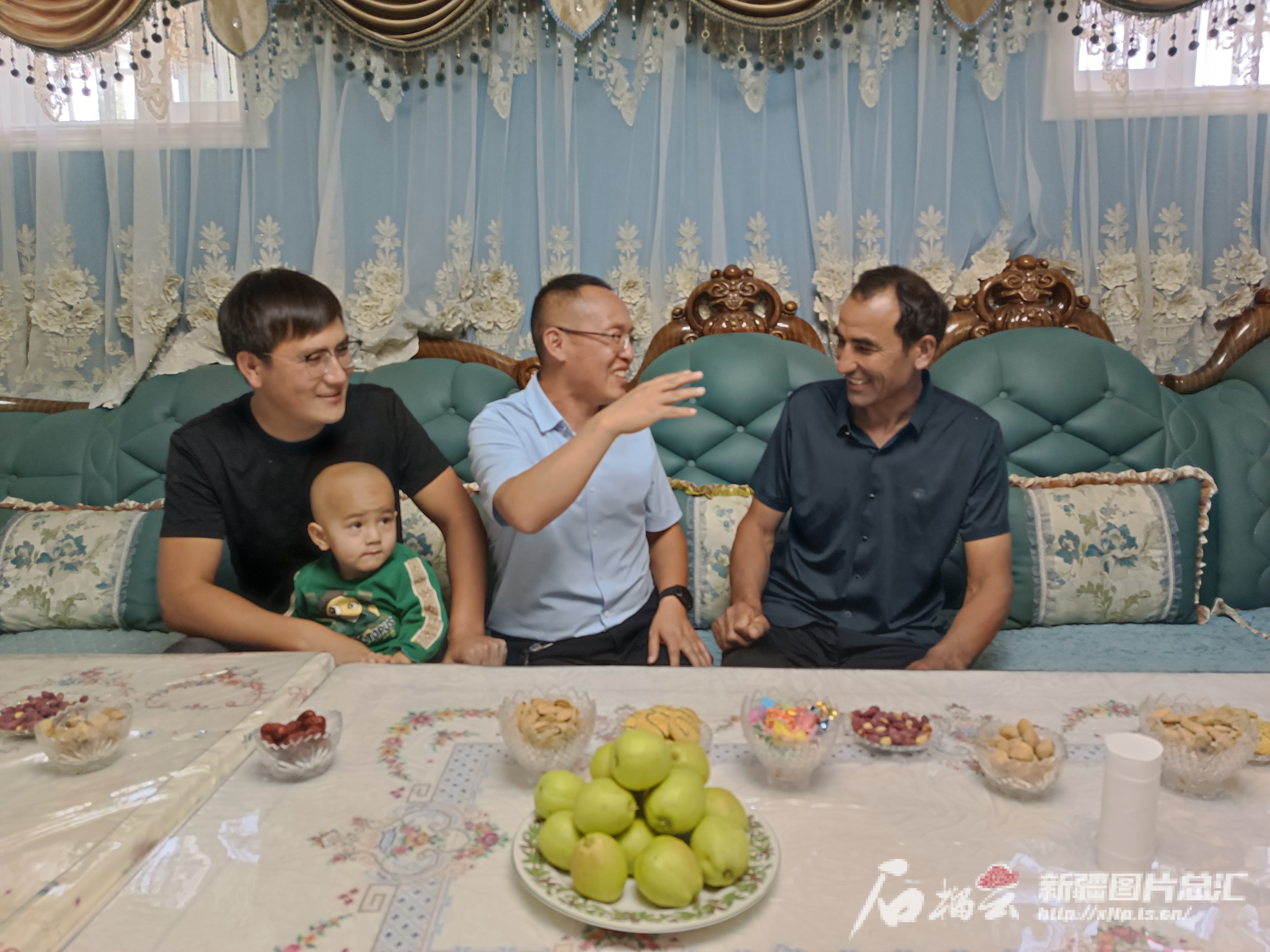 9月25日,吕培贵(中)在亚森·吐孙(右)家中聊天。天山网-新疆日报记者 张冬梅摄
