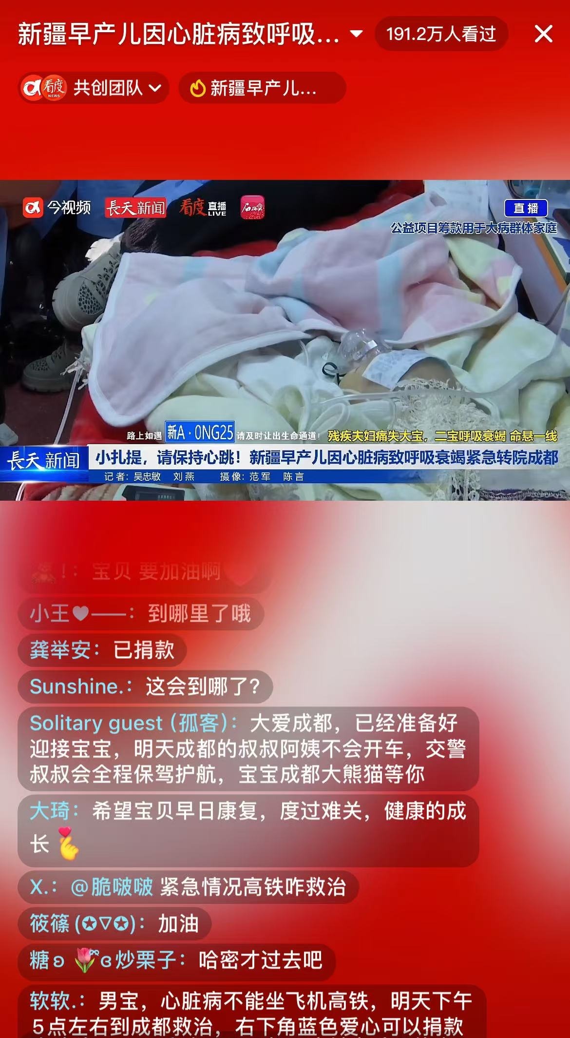 石榴云抖音32小时实时直播!新疆早产儿呼吸衰竭紧急转院成都