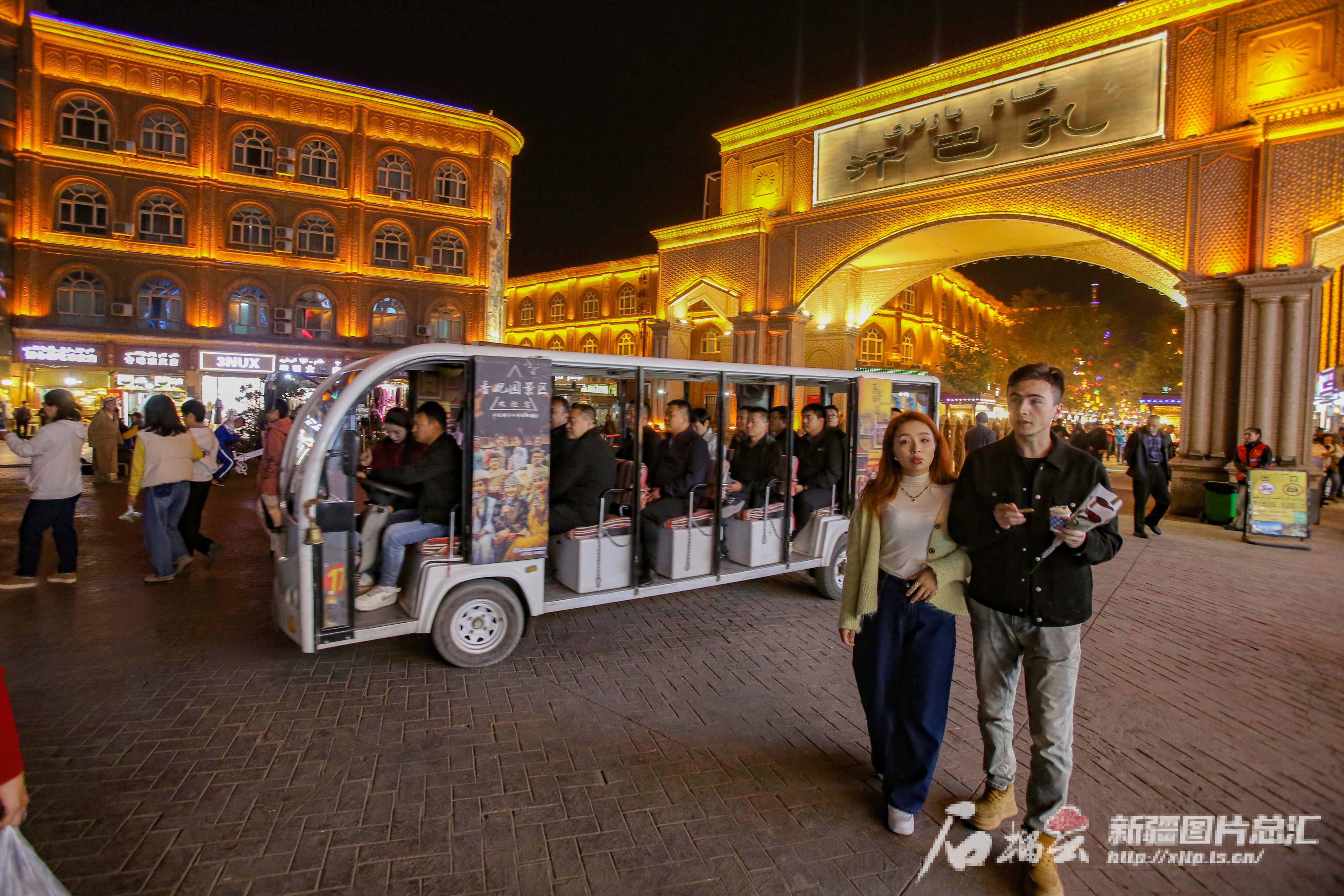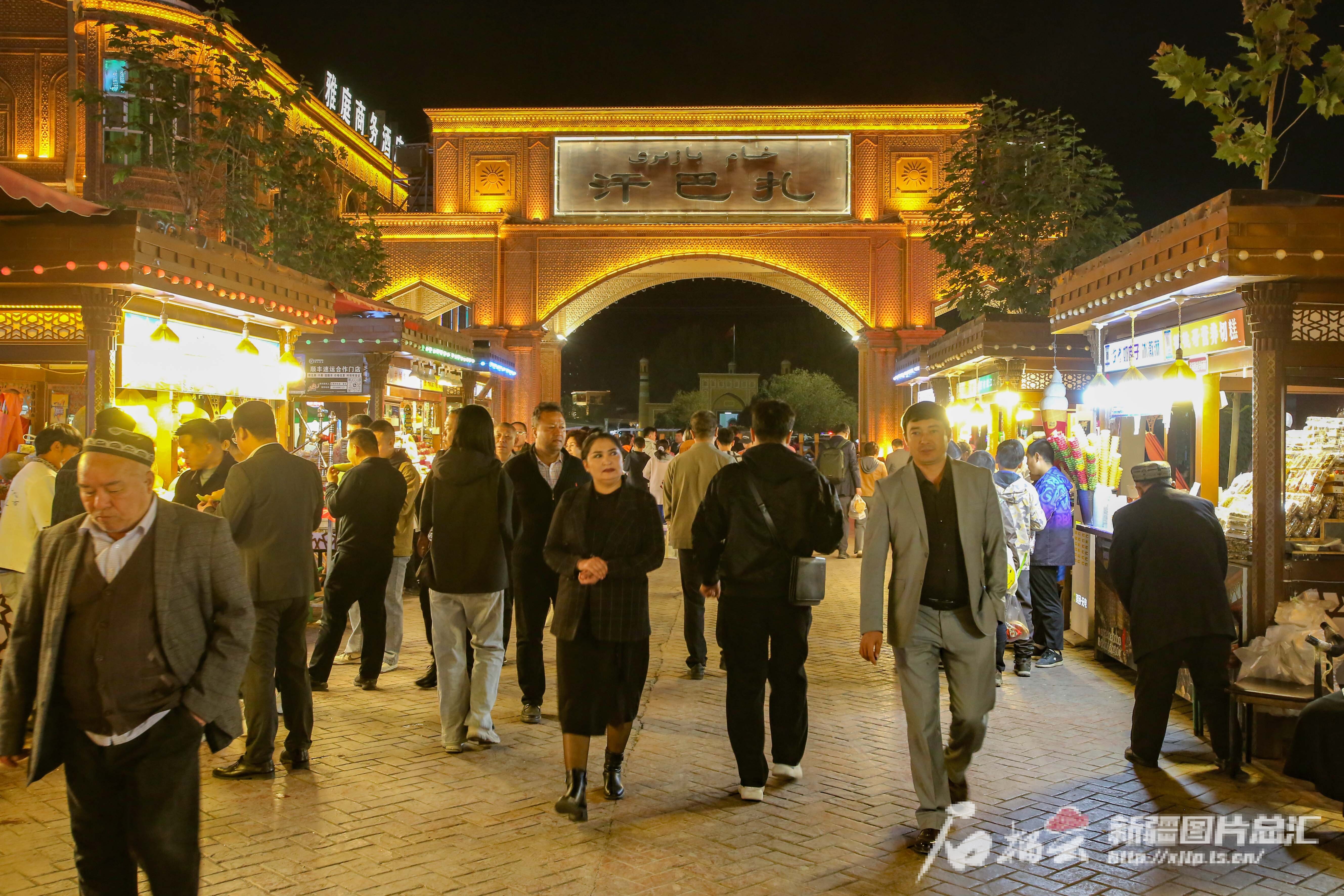 10月24日,游客在喀什古城景区汗巴扎夜市游览。