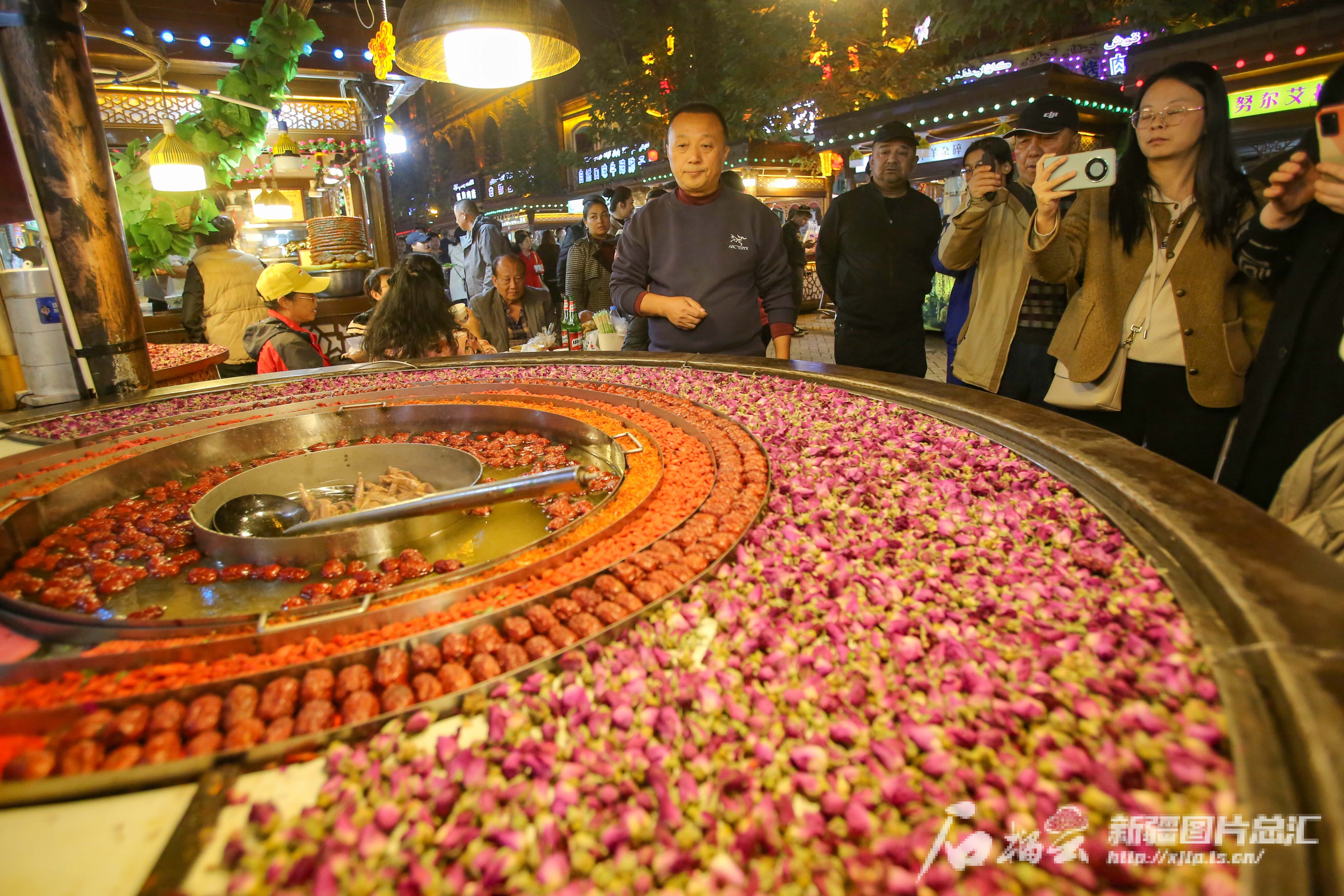 10月24日,游客在喀什古城景区汗巴扎夜市选购美食。