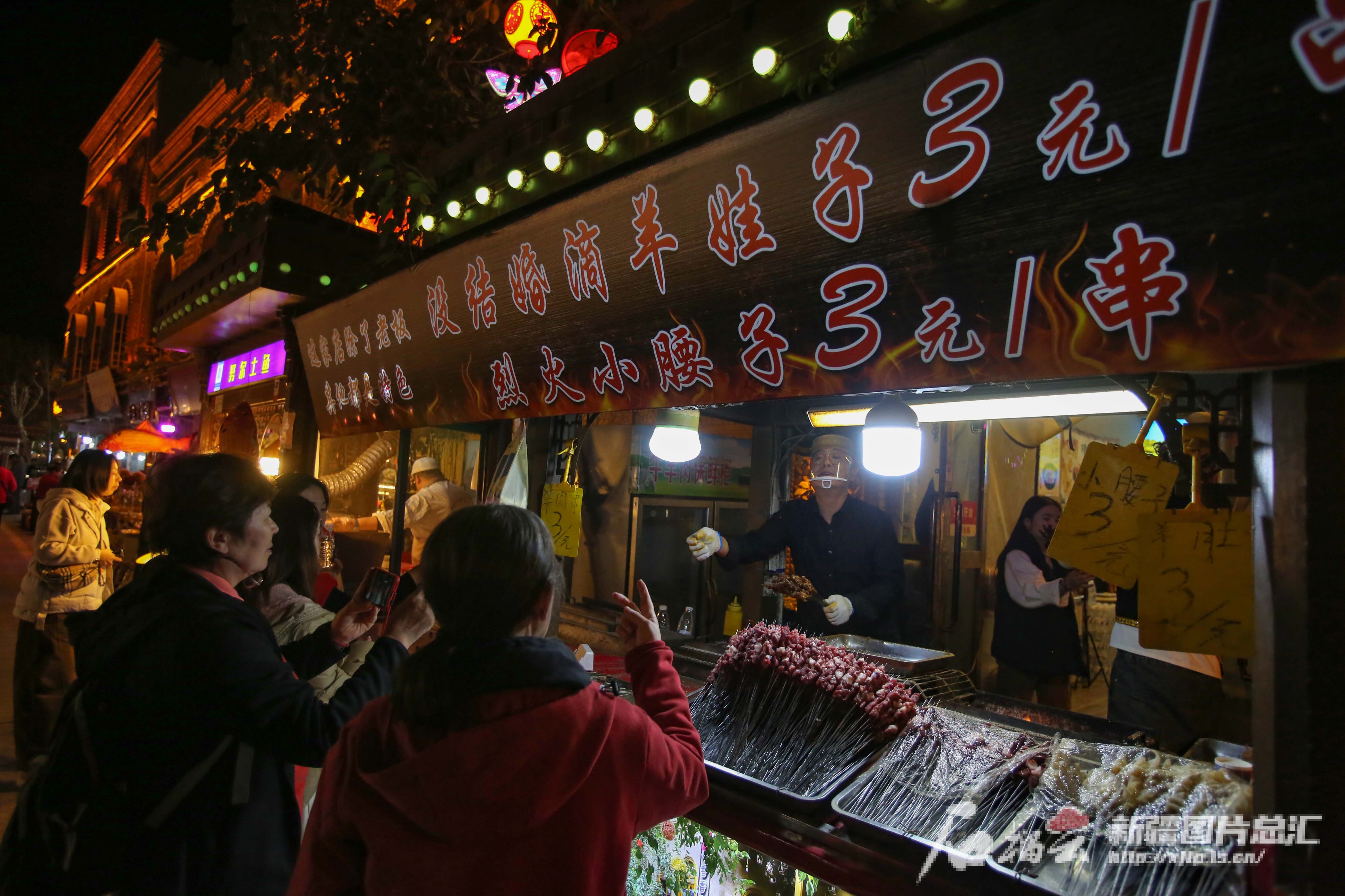 华灯初上,喀什古城景区的喧闹声还在持续,汗巴扎夜市上人来人往,缸缸肉、肚包肉、烤羊肉、烤蛋、驼蹄筋、牛头肉等特色美食香气袭人,吸引着游客一路逛一路吃。“我来喀什的当晚就在这儿吃的晚饭,临走前再看看这里。”来自广东的游客刘佳敏说。