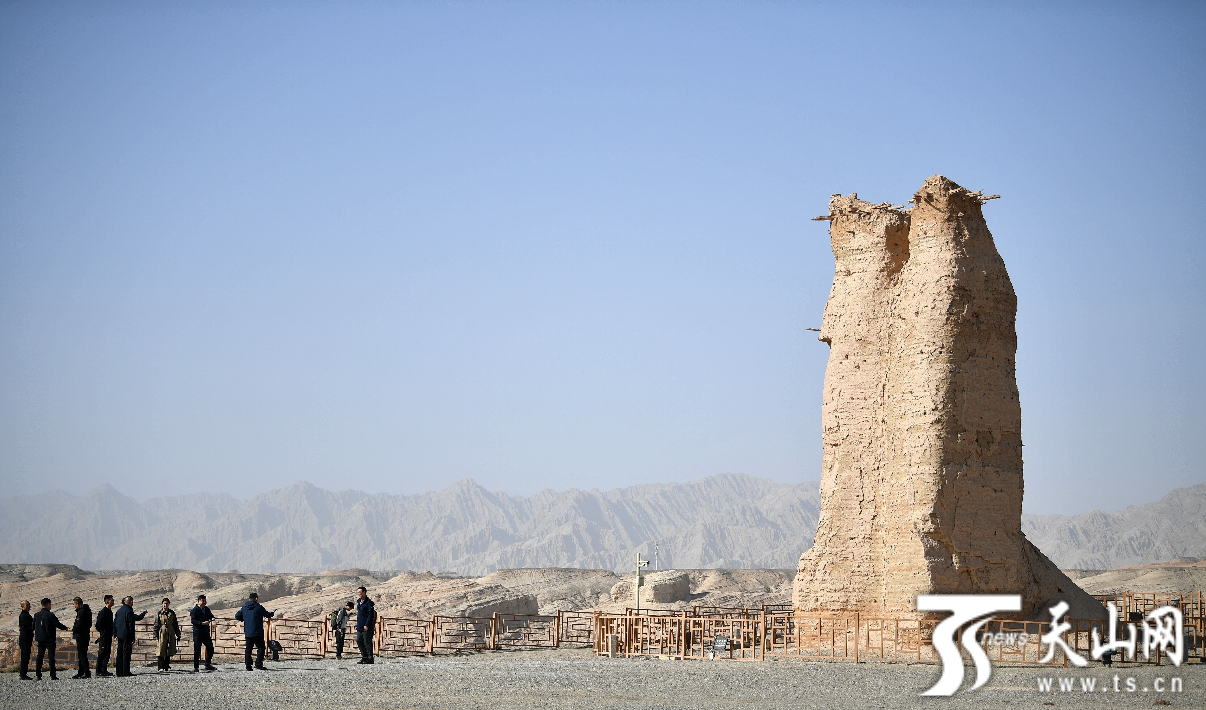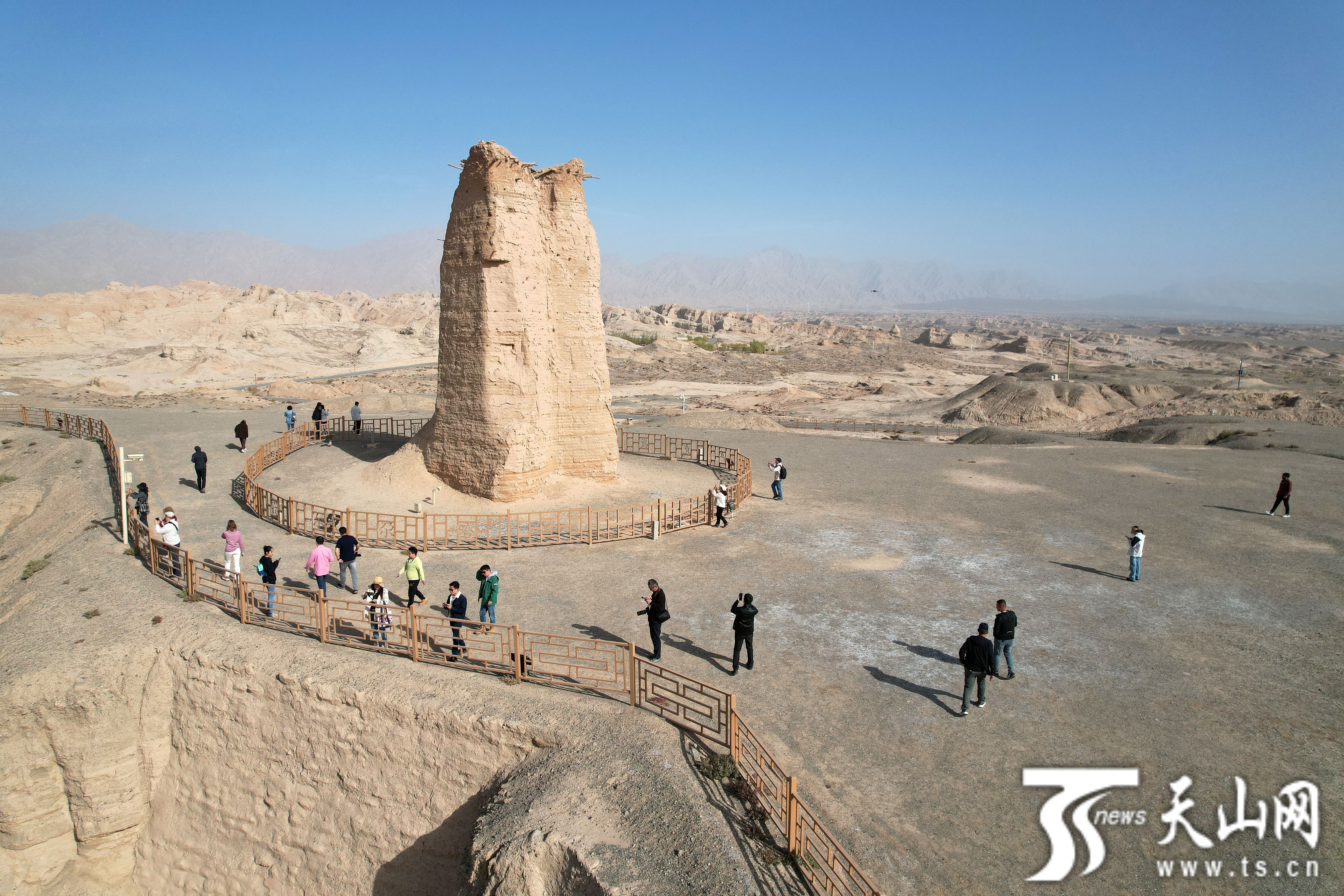 10月23日,游客在克孜尔尕哈烽燧遗址参观。天山网-新疆日报记者 邹懿摄