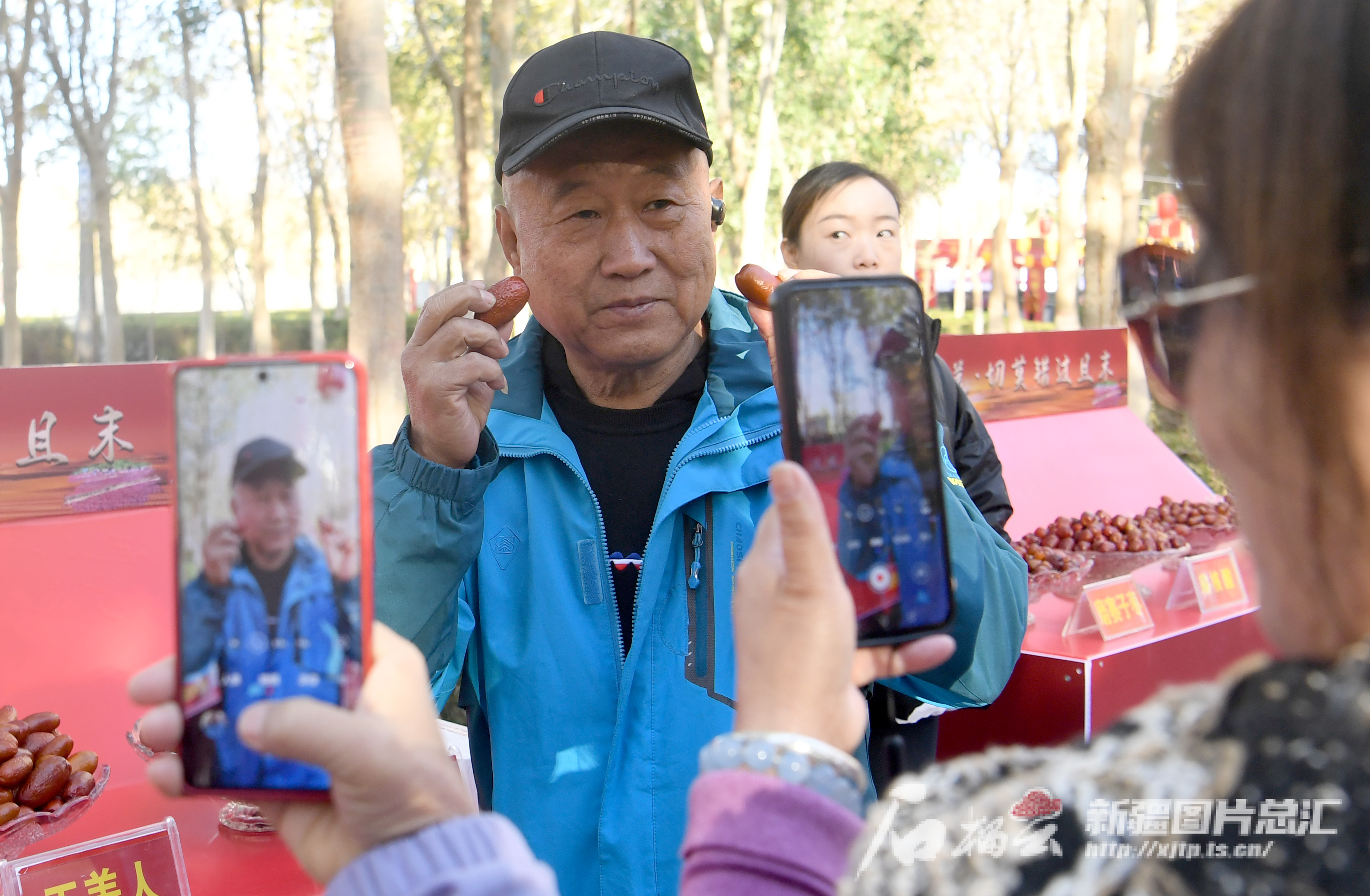 10月26日,游客在2024新疆巴州若羌且末红枣节开幕仪式上拍照。天山网-新疆日报记者 韩亮摄