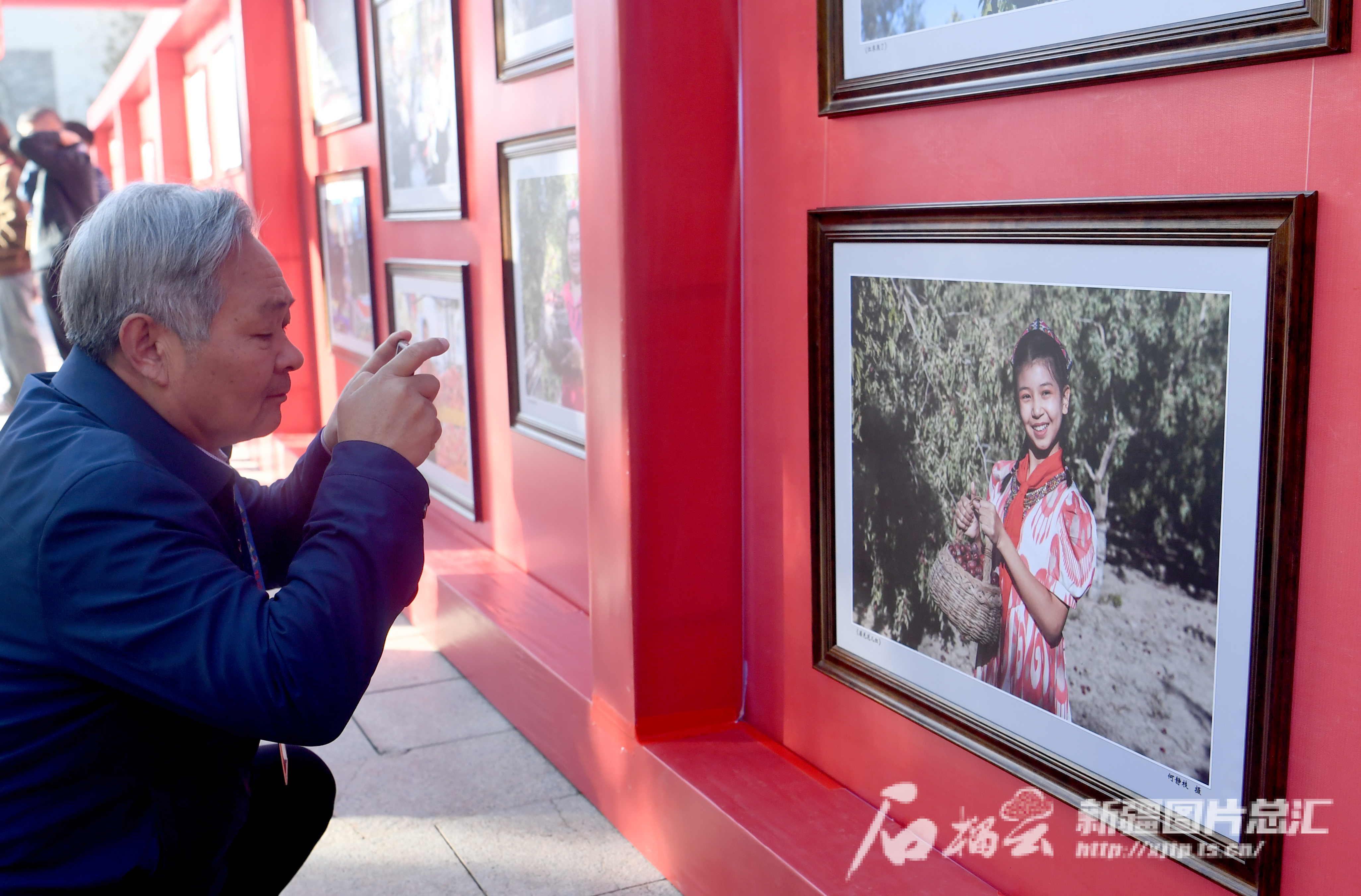 10月26日,游客在2024新疆巴州若羌且末红枣节开幕仪式上欣赏摄影展作品。天山网-新疆日报记者 韩亮摄