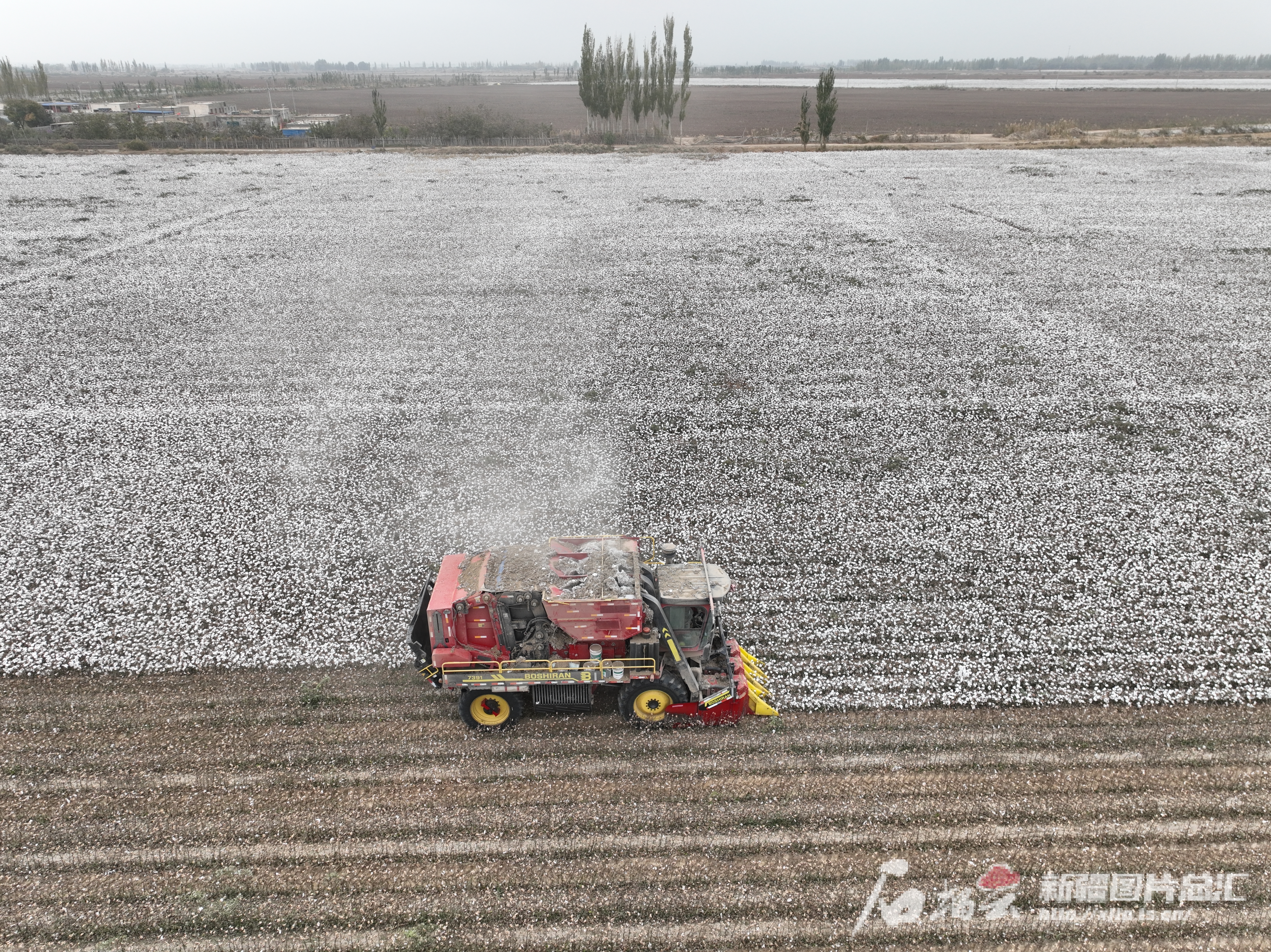 10月24日,在京东京造新疆阿瓦提棉花基地,一台大型采棉机正在作业。天山网-新疆日报记者 赵西娅摄