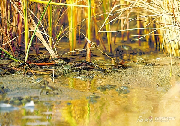 福海县国家现代农业产业园水稻种植基地以“稻蟹共养”模式养殖的扣蟹(摄于10月20日)。王景鸿摄