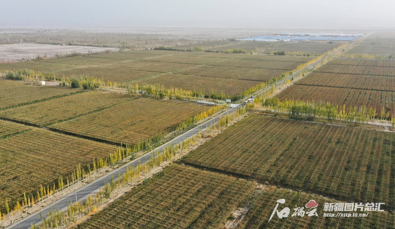 10月28日,俯瞰新疆徽岳记生物科技有限公司瓜蒌产业种植基地(无人机摄)。