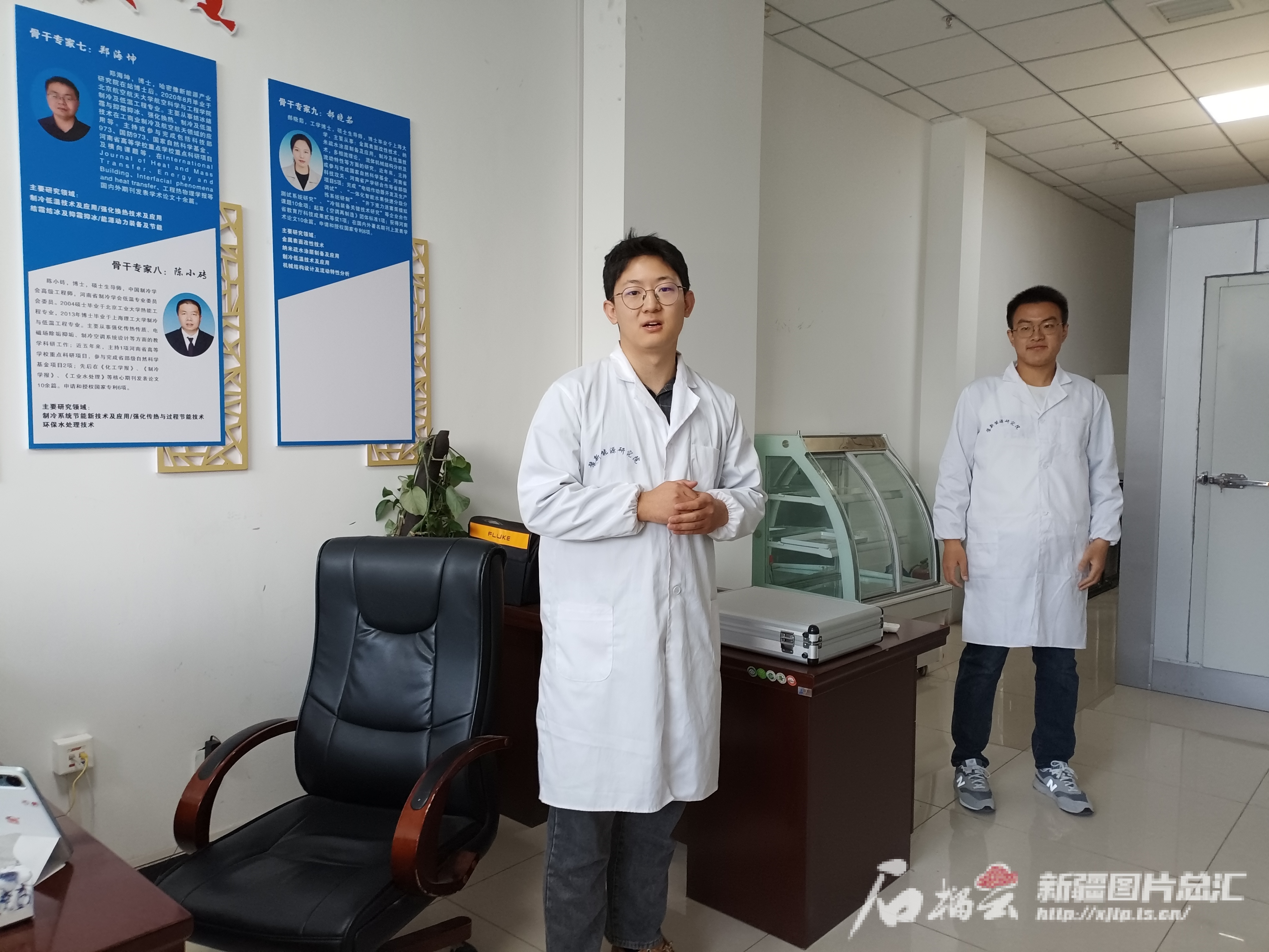10月25日,在哈密豫新能源产业研究院,2024届西部计划志愿者陈力康和吕学亨正身穿白大褂端坐在电脑前,对参与开发的一款冷藏农产品数据库的小程序进行数据分析。来到研究院仅两个月,他们就参与到了农产品冷藏、超疏水涂层材料等项目中。