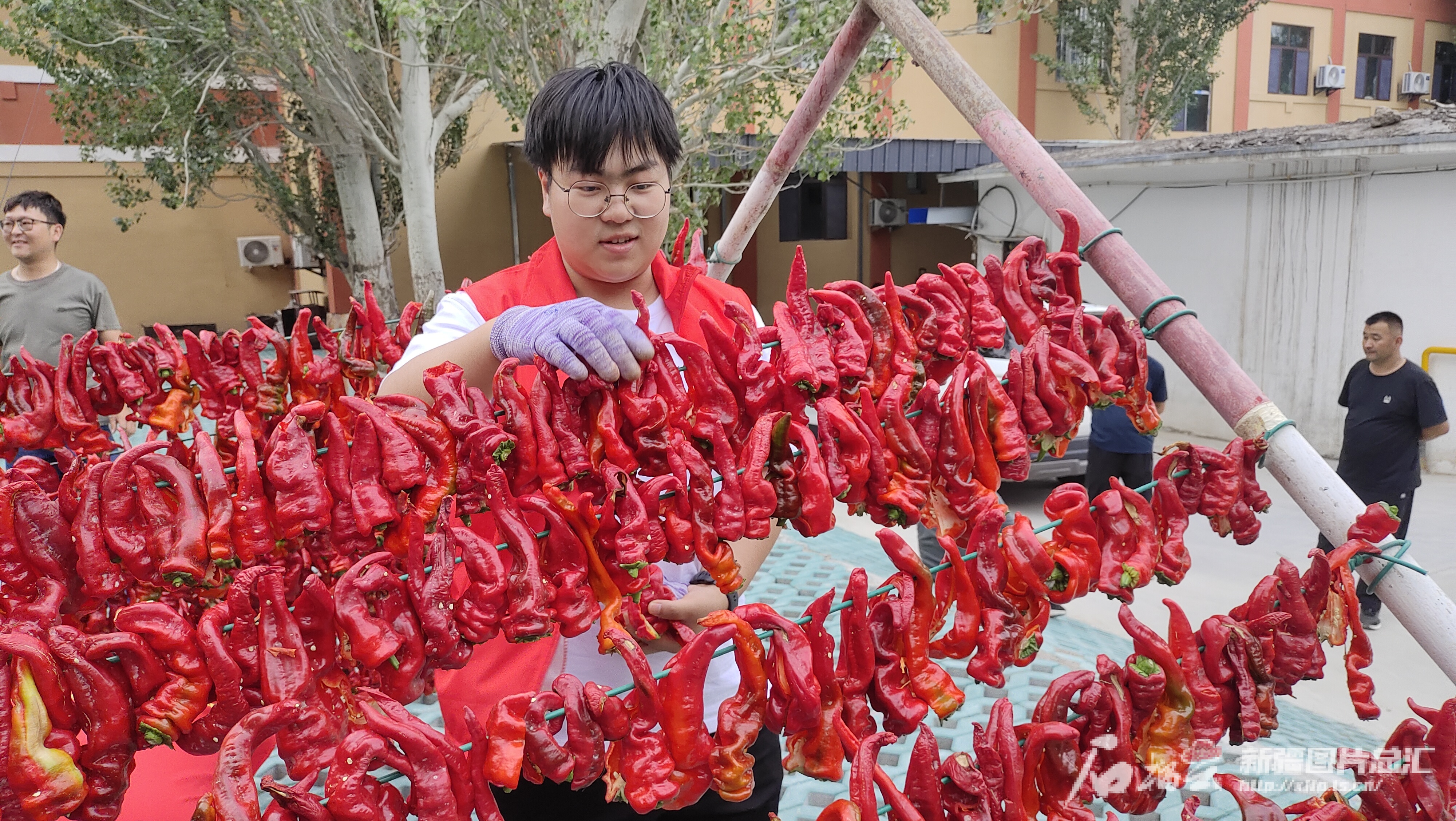 在辣椒丰收的季节,13名2024届西部计划志愿者来到巴里坤哈萨克自治县三塘湖镇学会的第一项技能就是切辣椒。三塘湖镇的辣椒皮薄肉厚、口感独特,尤其是干辣椒(俗称辣皮子)深受消费者青睐,成为当地百姓一项重要的经济来源。然而品质优良的辣皮子从采收到制干需要耗费不少人力。每年当地的乡镇干部都会走村入户去助农。“初到田间地头,我们面对堆积如山的辣椒,显得有些手足无措。但在叔叔阿姨们的耐心指导下,我们逐渐掌握了技巧,从生疏到熟练,切辣子的速度越来越快。”志愿者张梅说,这段经历让她理解了“粒粒皆辛苦”的含义,与基层群众又贴近了一步。
