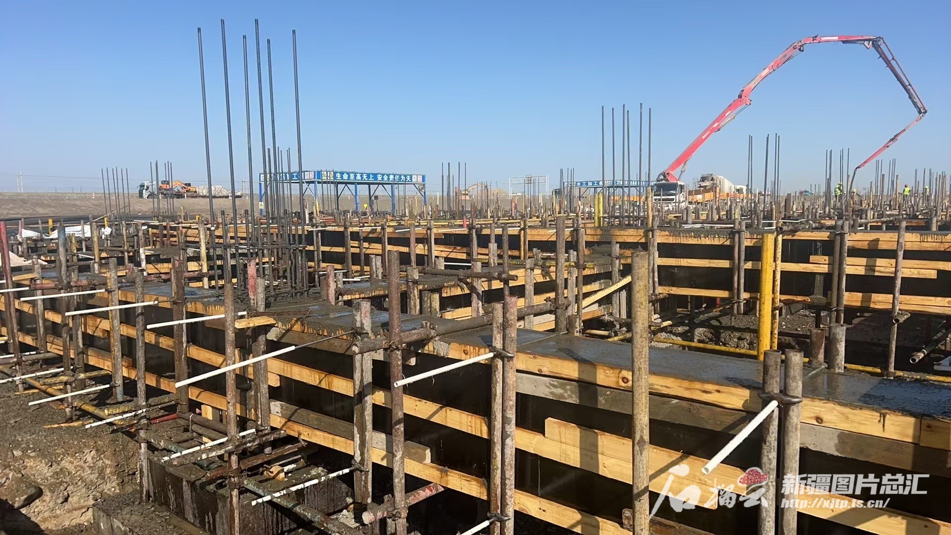 G30线连霍高速改扩建工程哈密至吐峪沟段吐峪沟服务区南区综合楼施工现场。孟健摄