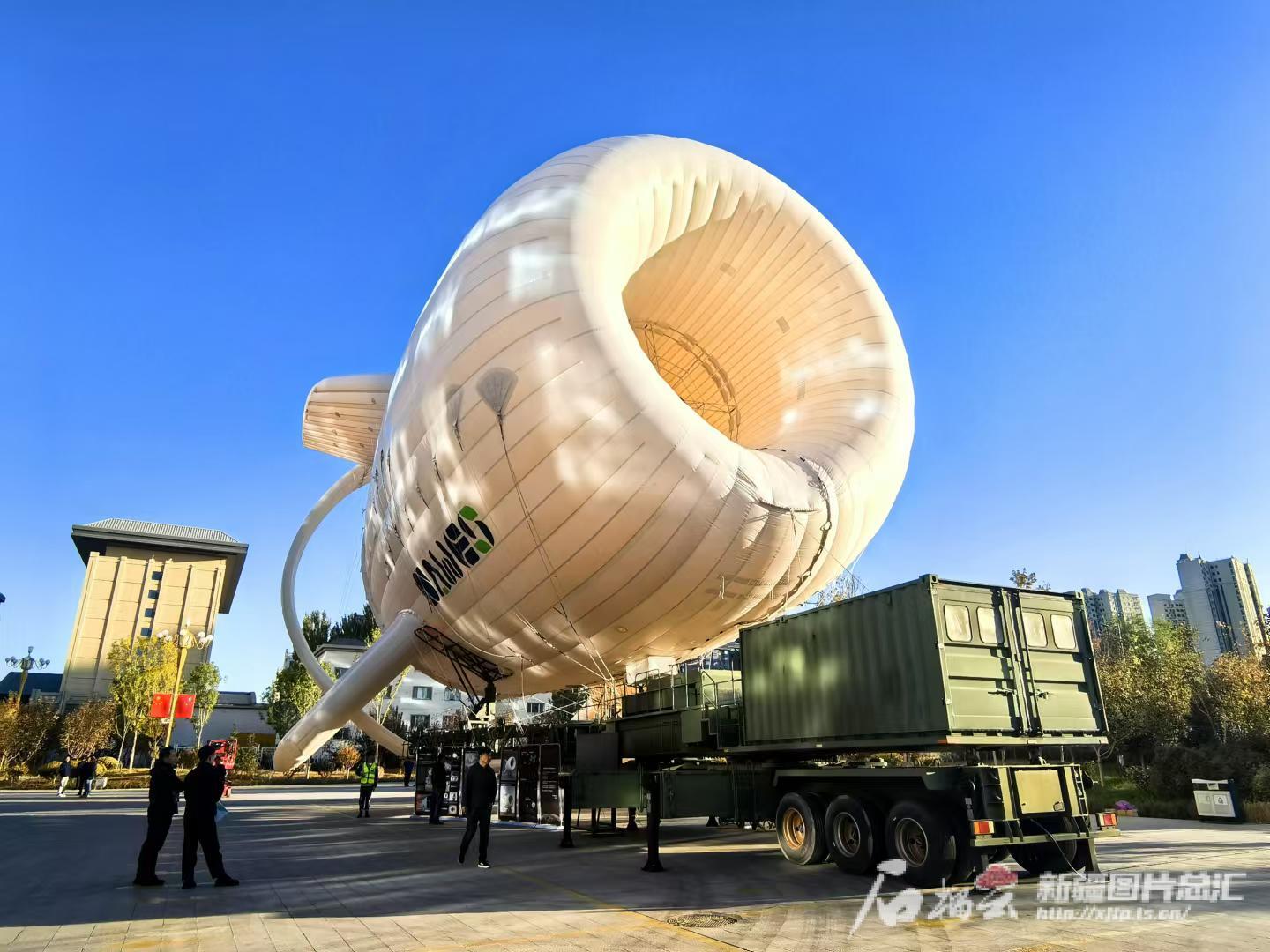 10月27日,在“2024哈密能源之问”大会会场外,国内首套“平流层浮空风力发电系统”亮相。天山网-新疆日报记者 魏永贵摄
