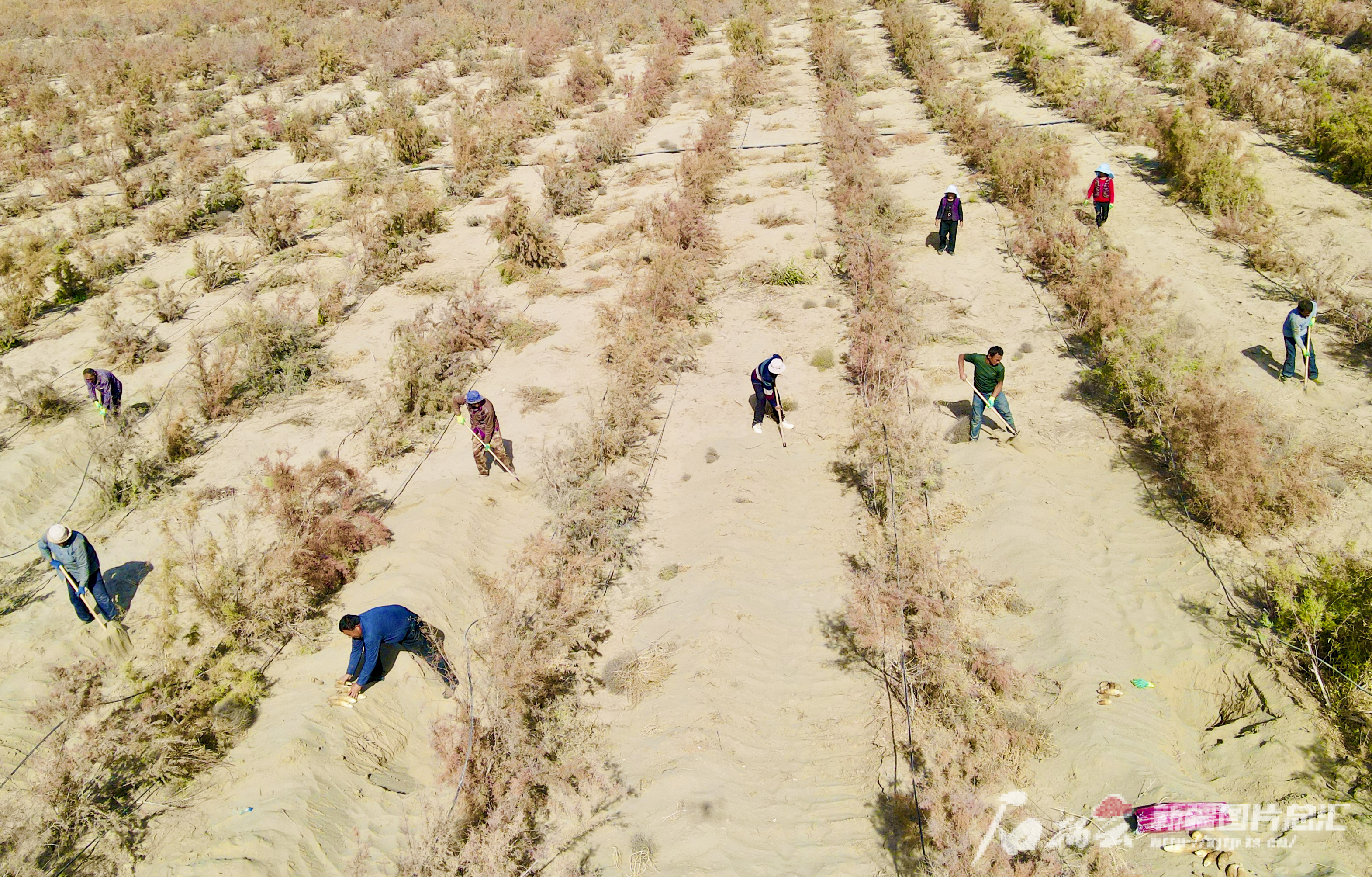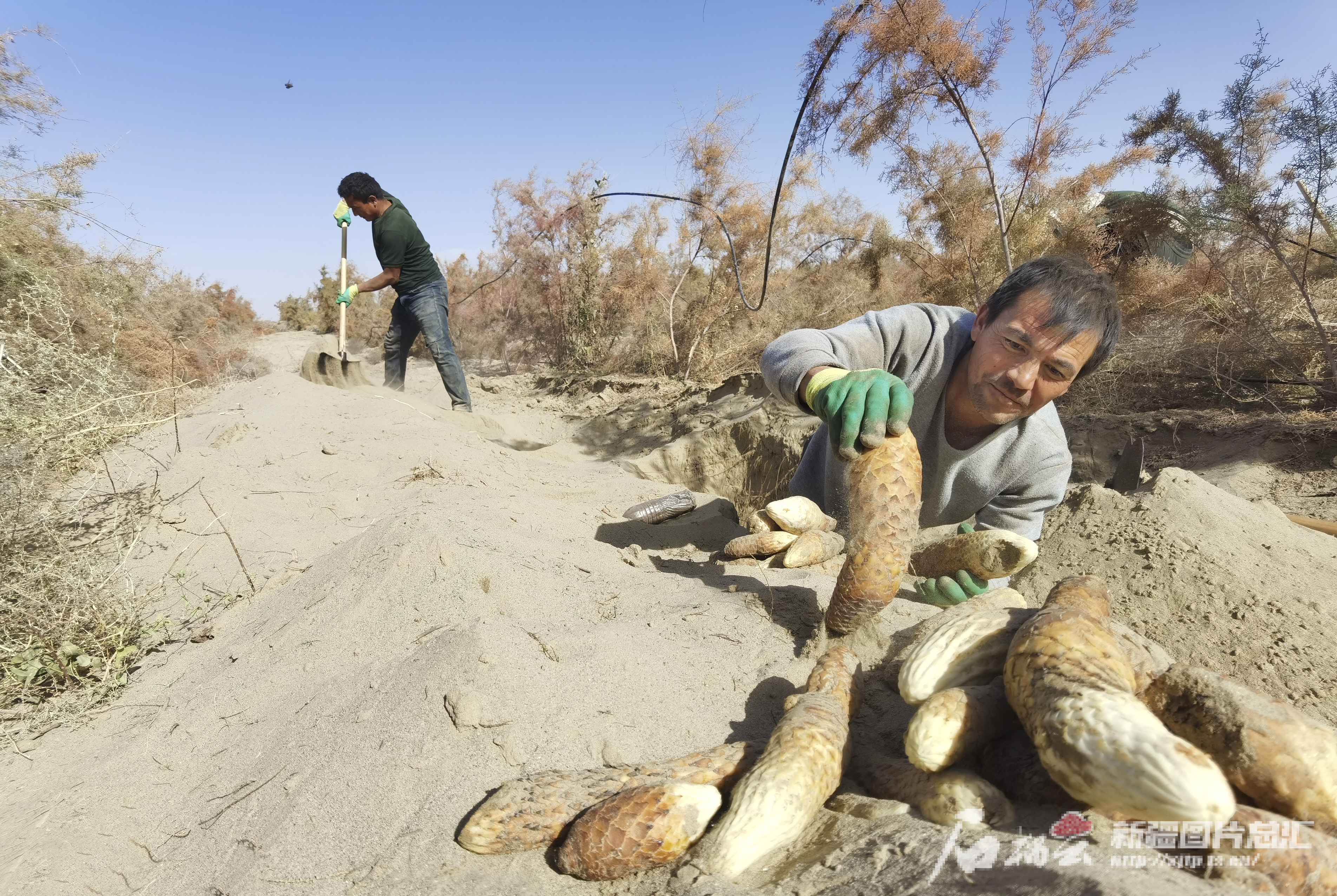 10月31日,和田县迪达尔农民专业合作社的社员在红柳下“淘金”。
