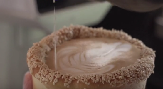 新疆国际大巴扎内的创意“馕咖啡”。中新网视频截图
