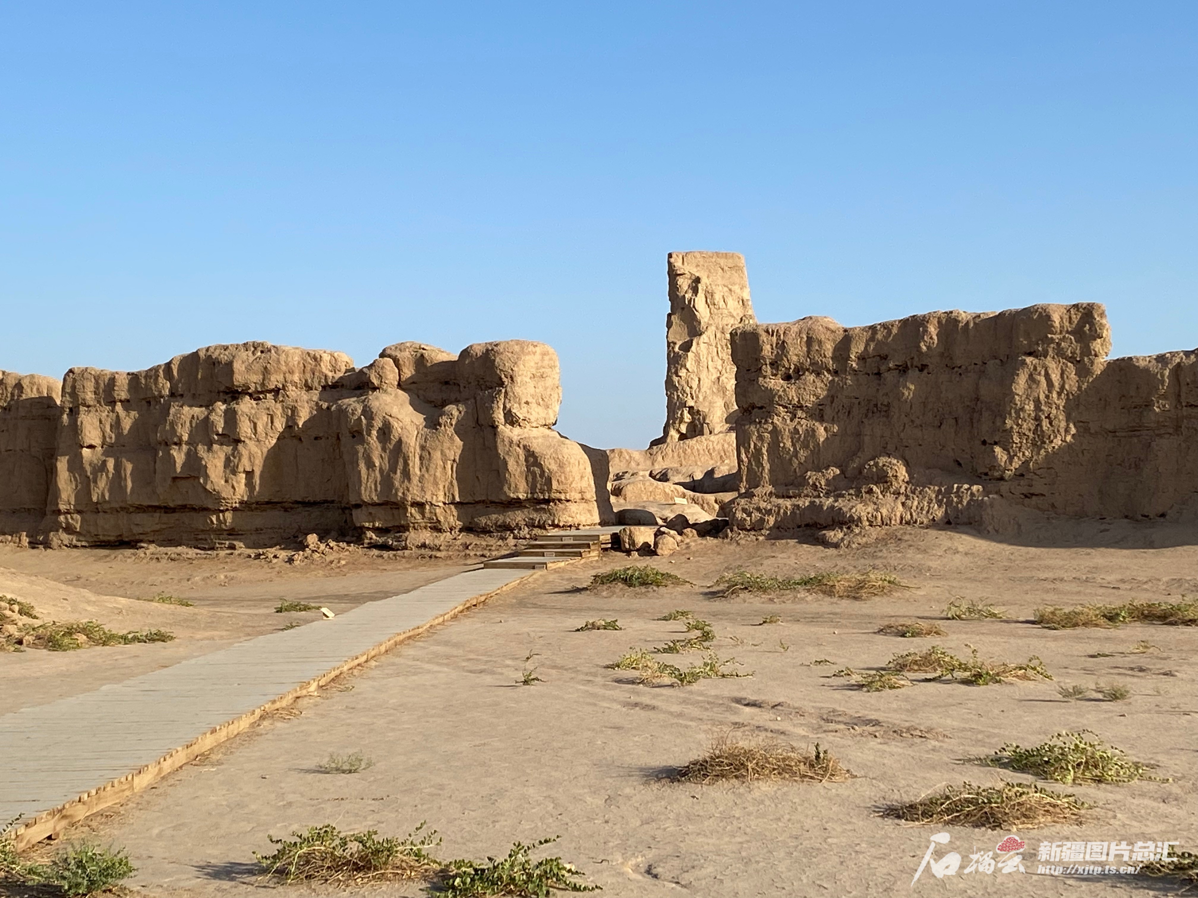 继续往前走,来到了位于故城中心土台地上的可汉堡遗址。走进堡内,北面的高台上有座高达15米的方形塔建筑。土台西侧有一座上下层建筑,现仅存地下部分,南、西、北三面有宽大的阶梯式门道,规模虽不大,但与交河故城现存唐代最豪华的官署衙门的建筑形式相同,可能是宫殿遗址。