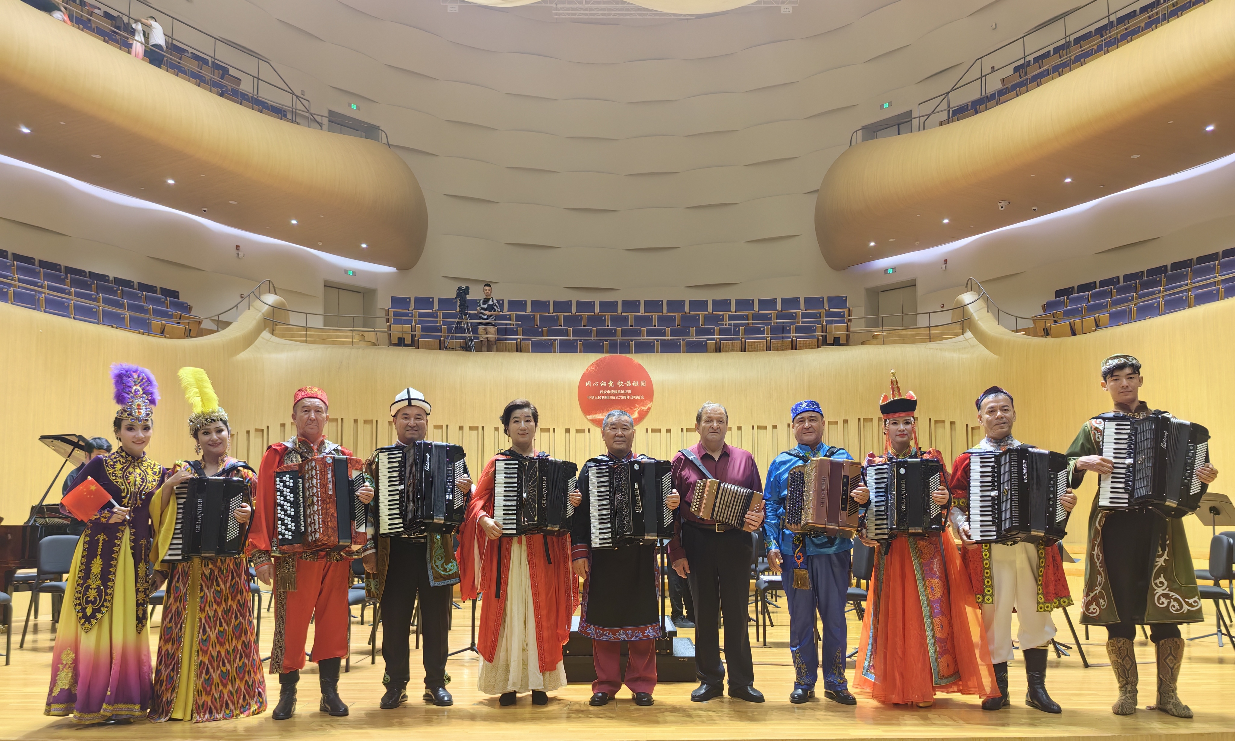 9月20日,“伊犁民族团结手风琴乐队”在西安参加演出。邹仲伟 摄