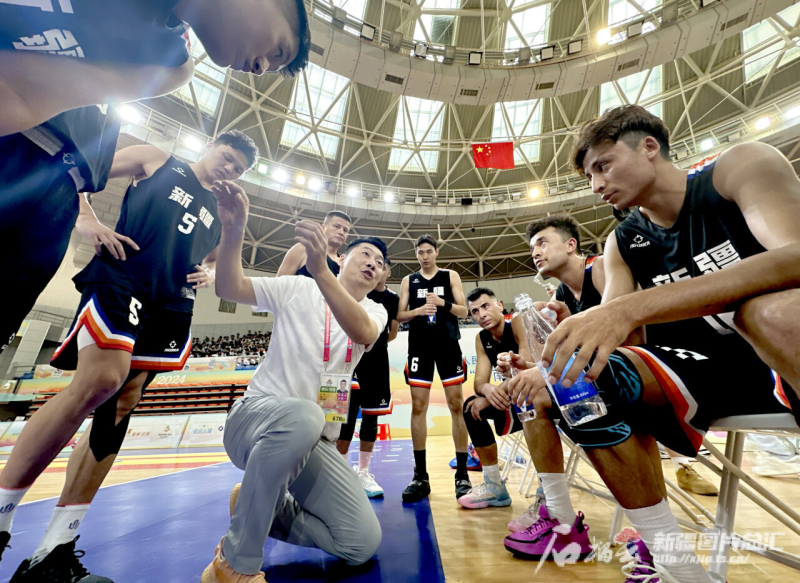 新疆代表团珍珠球队的教练为队员布置战术。天山网-新疆日报记者 韩亮 摄