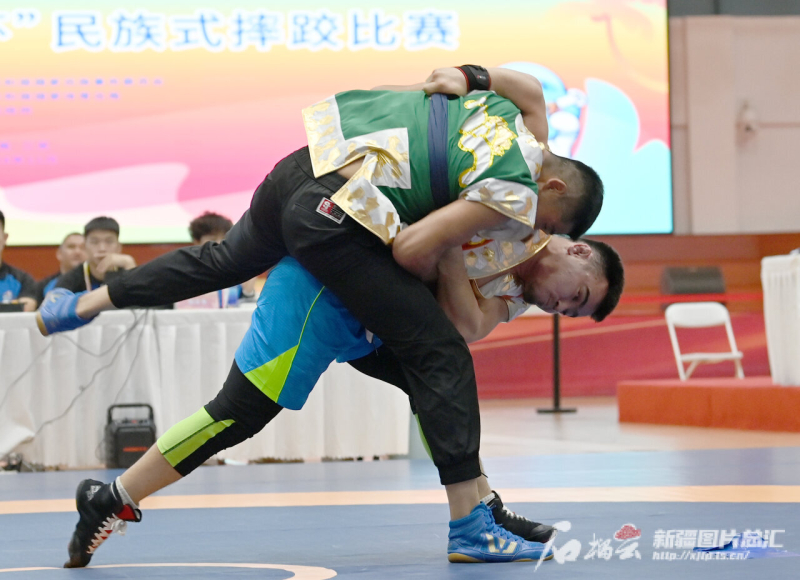 新疆代表团民族式摔跤队运动员亚沙尔·提力瓦力地在比赛中。 天山网-新疆日报记者 韩亮 摄