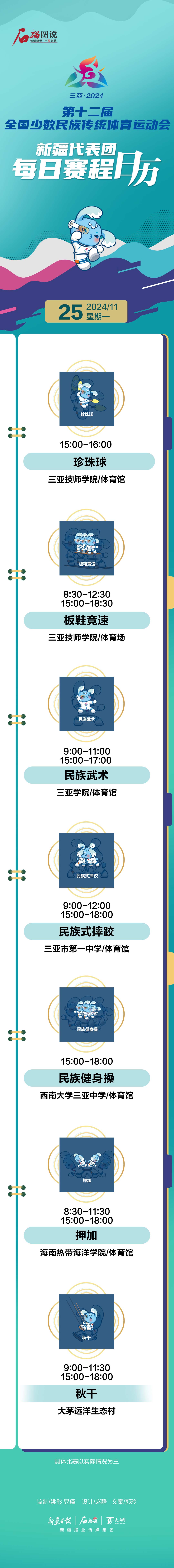 石榴图说 | 第十二届全国少数民族传统体育运动会新疆代表团11月25日赛程日历