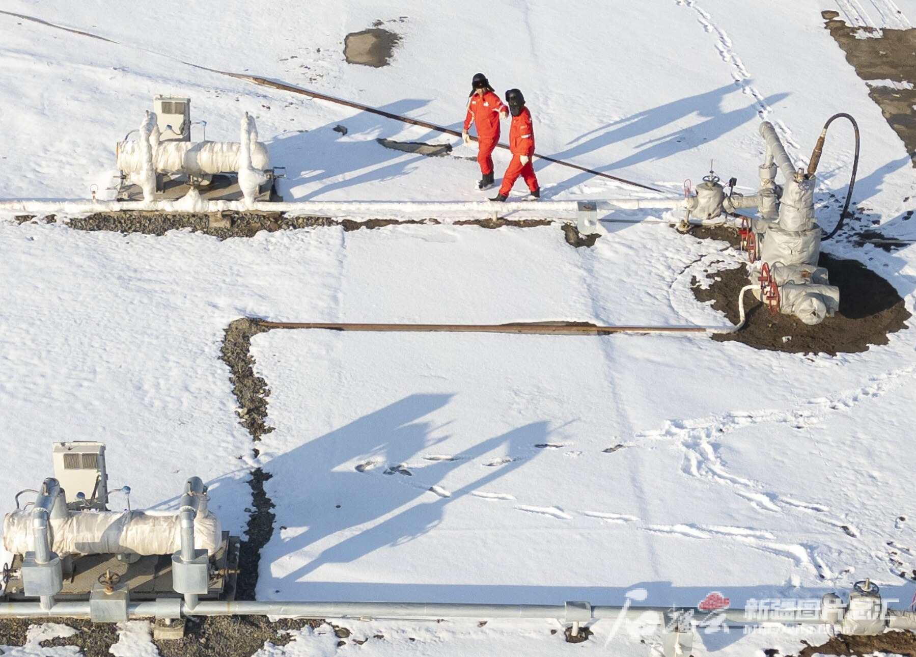 11月24日,新疆油田吉庆油田作业区员工在58号生产平台巡检。张睿 摄